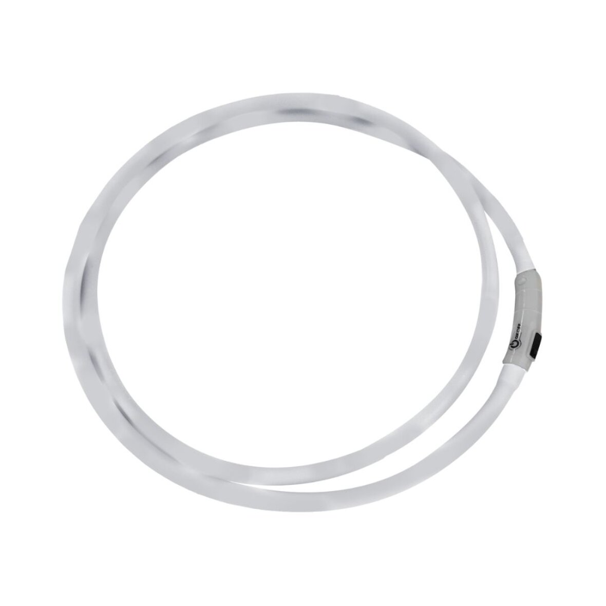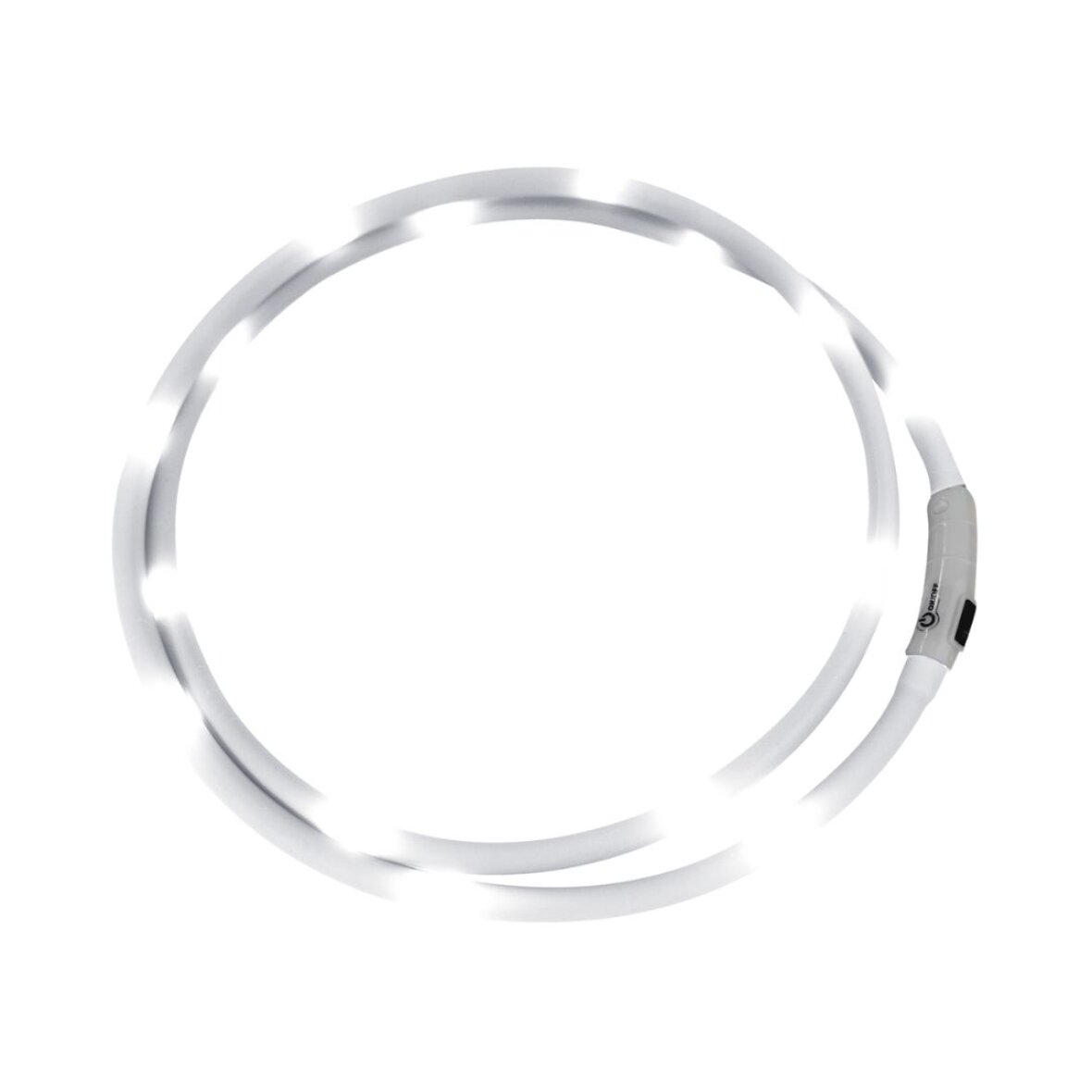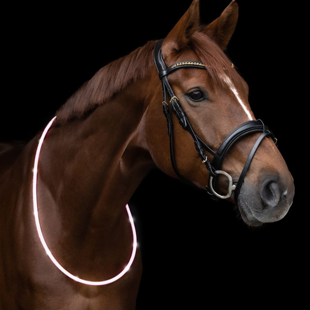 Helt genial LED halsrem til hesten fra Waldhausen. Denne halsrem kan skæres til i størrelsen, så den kommer til at passe helt perfekt. Den er med LED pære og på en opladning kan den lyse cirka 2 timer. Den har 3 lys funktioner, 2 blik og kontinuerligt lys. Denne LED halsrem kan oplades med USB-lader, sådan en medfølger i pakken. Det tager cirka 1,5 time at oplade halsremmen og så er den selvfølgelig vejrbestandig.