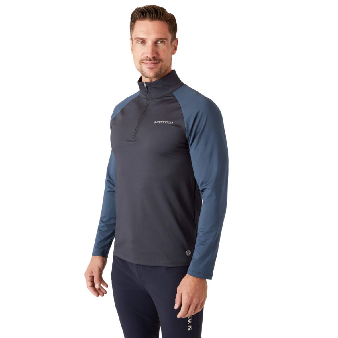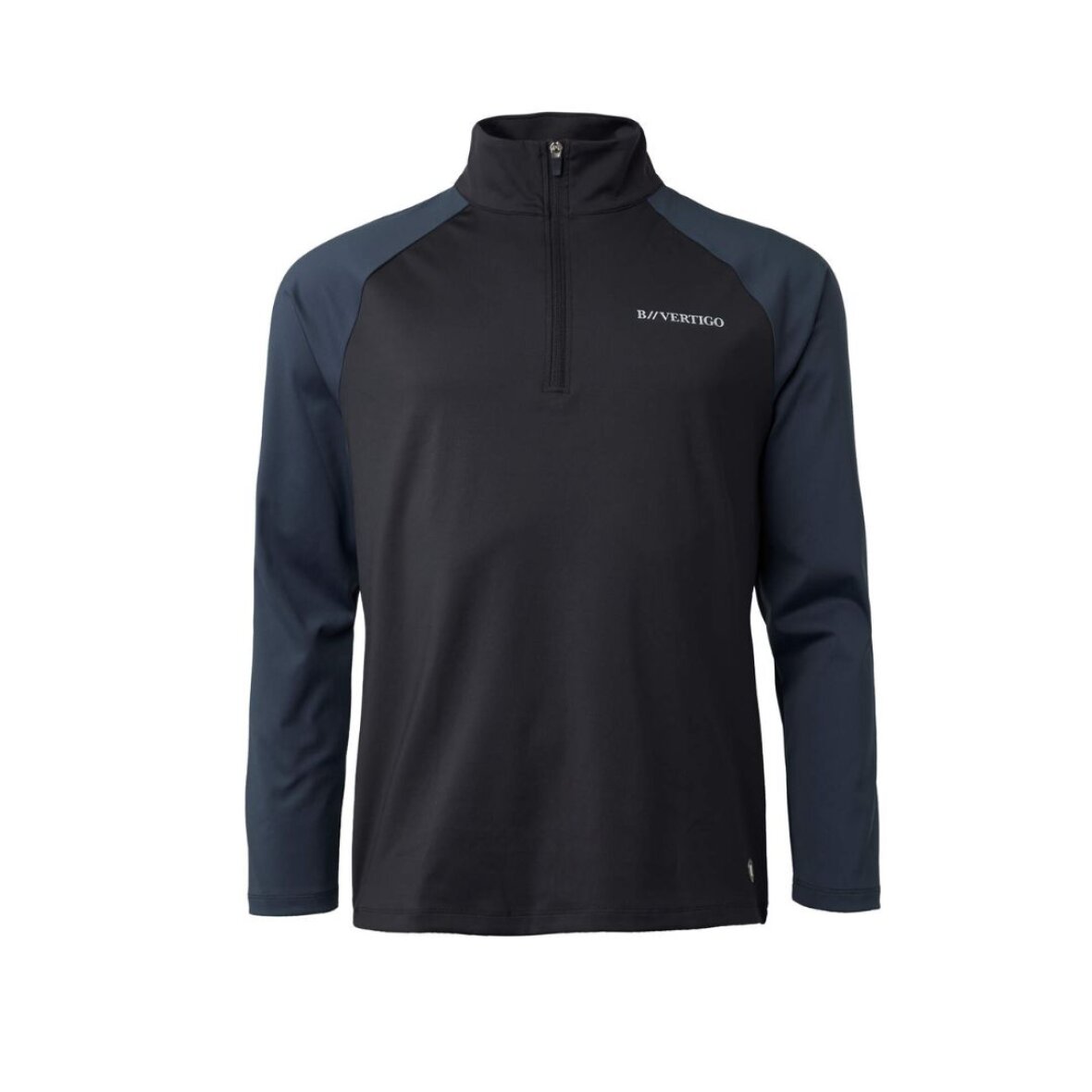 Funktionel træningsbluse til herre fra B Vertigo. Blusen er fremstillet i åndbart og hurtigtørrende materiale. Den er med høj krave og lukkes med kort lynlås i fronten. Reflekterende B Vertigo logo på brystet og B Vertigo logo patch ved hoften.