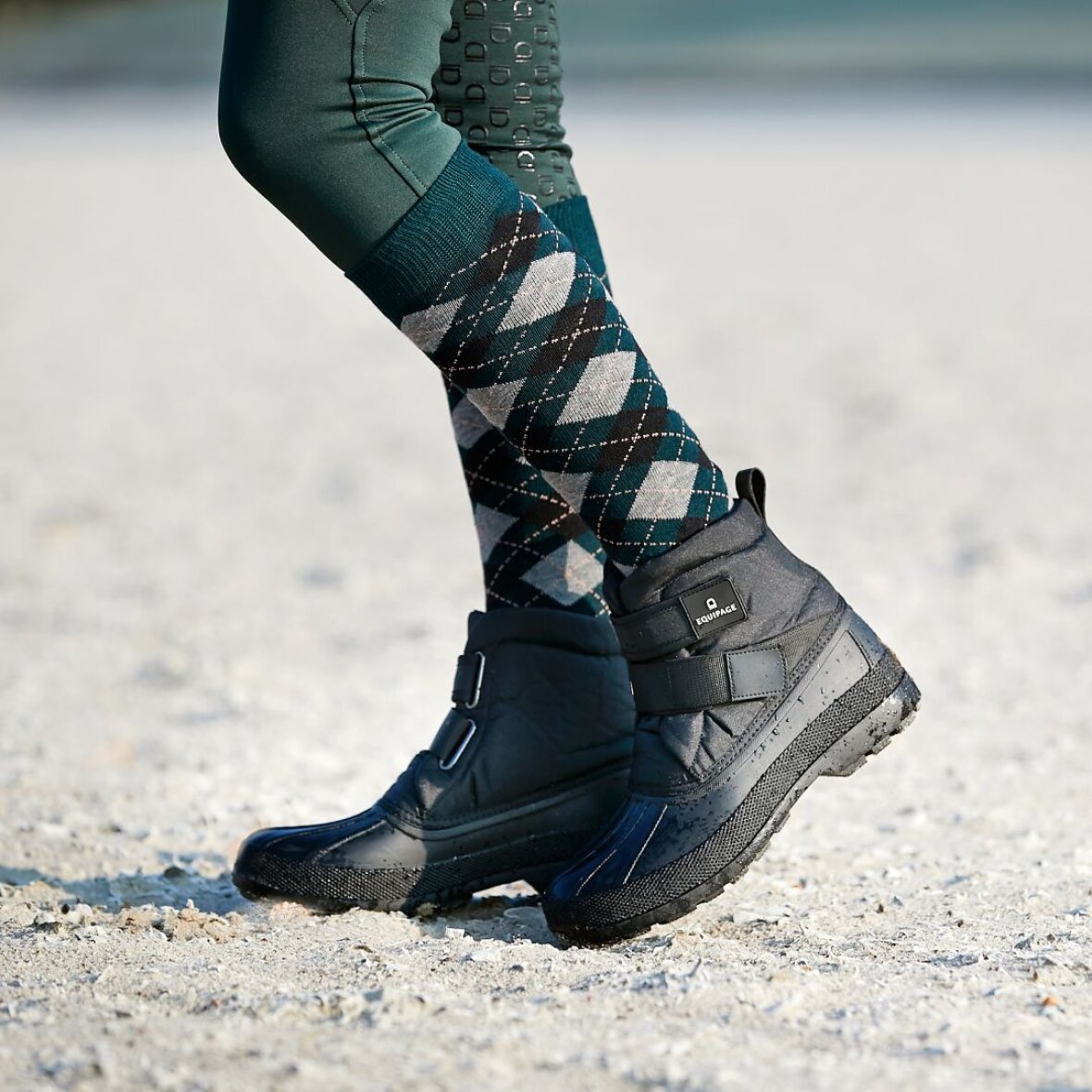 Varme vinter staldstøvler fra Equipage. Disse støvler er vandafvisende og foret indvendig så du nemt kan holde varmen på de kolde dage. De lukkes med 2 velcro stropper med Equipage logo. Støvlen er med skridsikker gummisåler. Støvlen er lidt stor i størrelsen, vi anbefaler at man tage en nummer mindre.