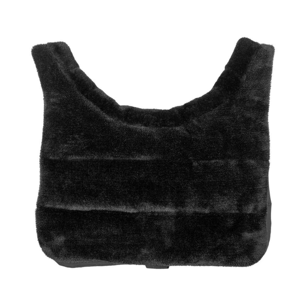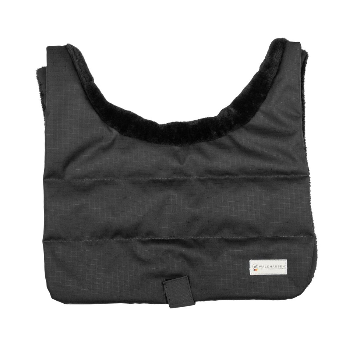Ideel pad med sort kunstpels der beskytter hestens bringe mod gnidninger fra dækkener. Waldhausen logo patch forneden.