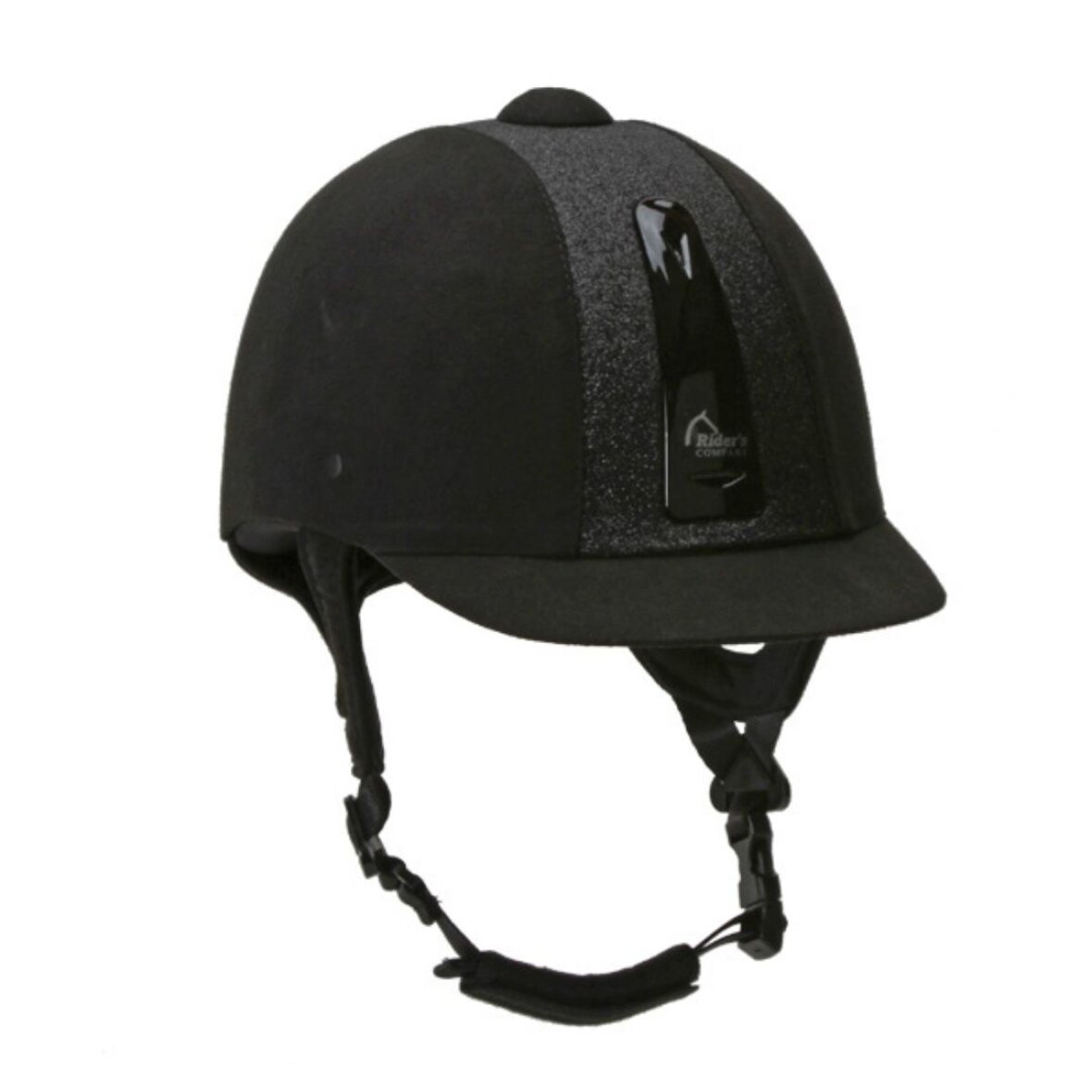 Sikkerhedsridehjelm fra Rider's Company med microkrystal panel i toppen, god ventilation og lækkert betræk i kunstskind. Denne ridehjelm spændes underhagen med justerbare stropper.