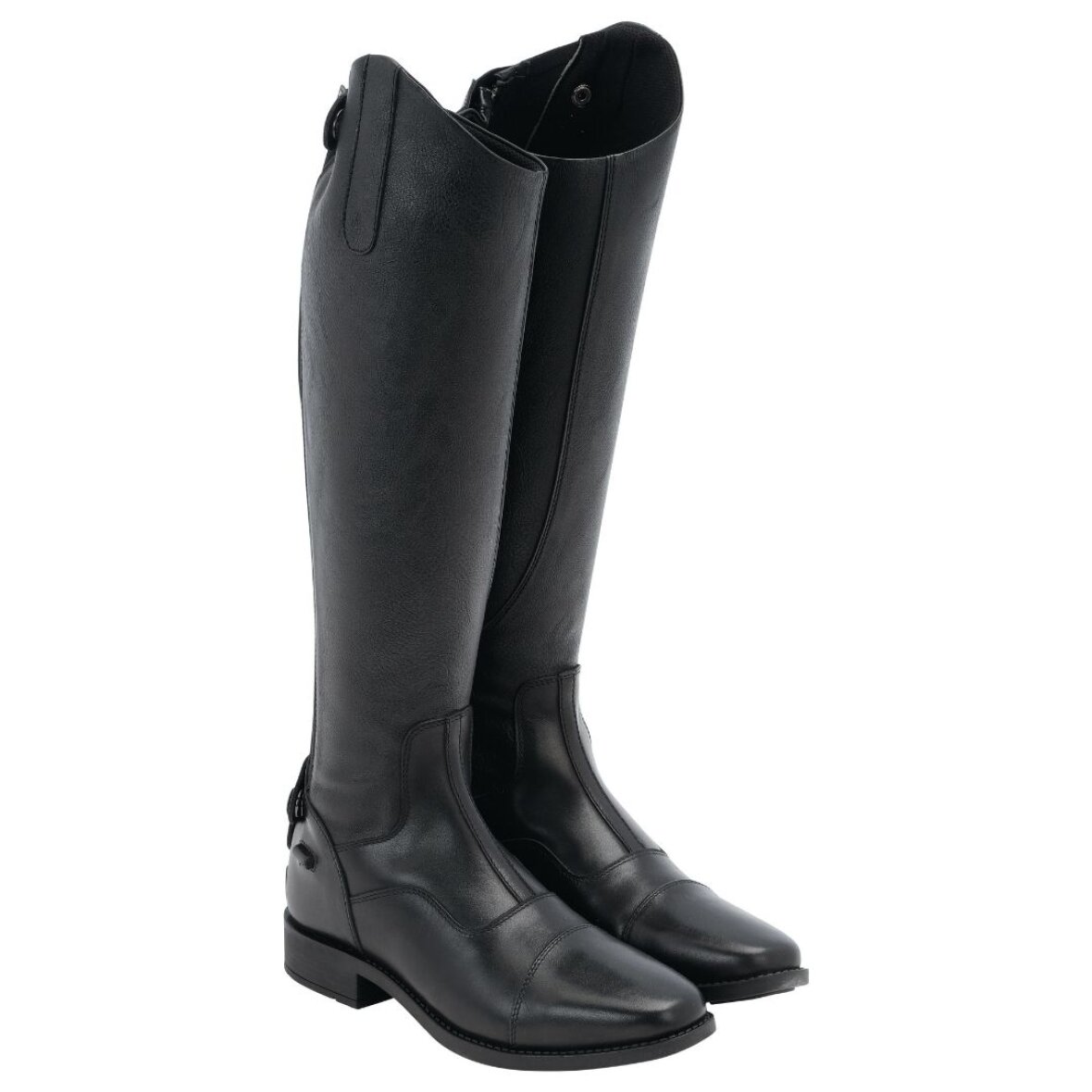 Lange ridestøvler med lynlås fra Equipage. Disse ridestøvler er fod delen fremstillet i ægte læder og skaftet af syntetisk læder. Skridsikker gummisål med hæl. God bred elastik op langs lynlås for nemmere at kunne spænde støvlen på benet. Læder stropper øverst og nederst på støvlen for at beskytte lynlåsen.