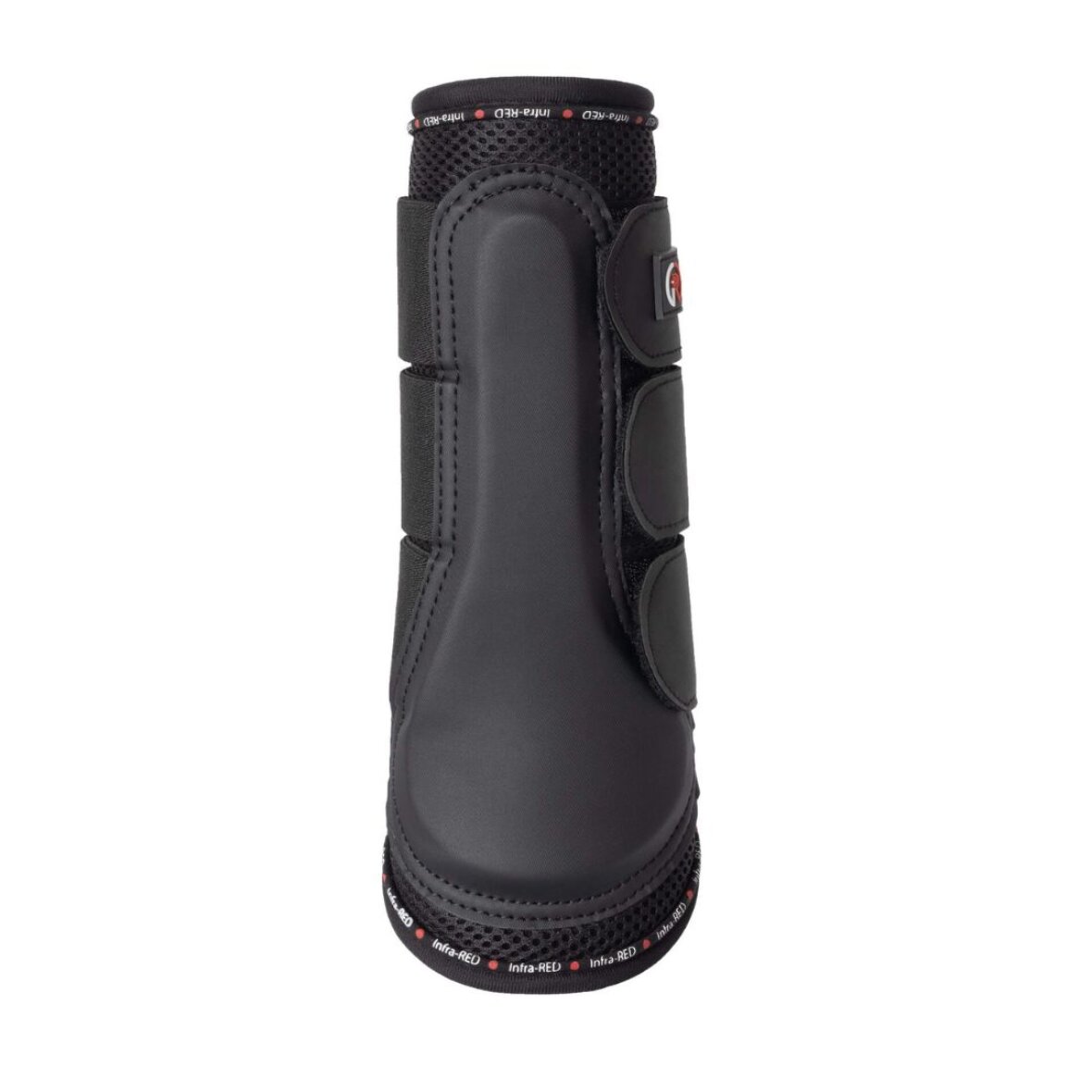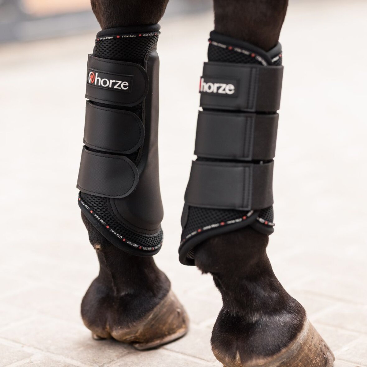 Dressur gamacherne fra Horze har indvævet keramiske nanopartikler på indersiden, der reflekterer hestens egen kropsvarme. Denne naturlige varme stimulerer blodcirkulationen i sener og muskler, hvilket: