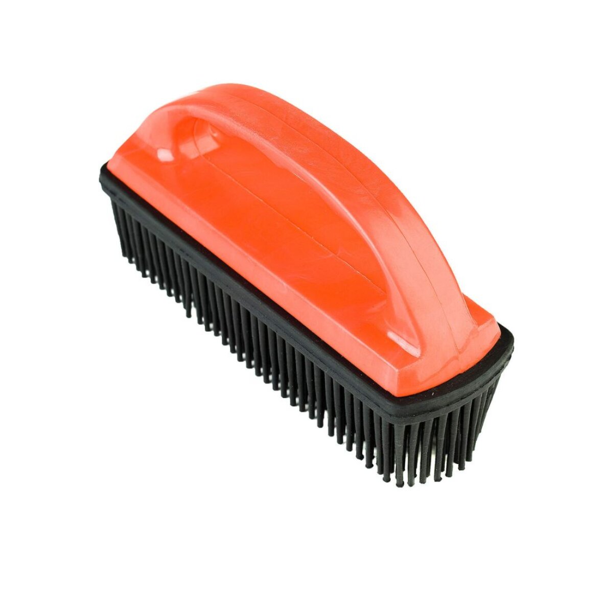 Ekstra effektiv gummibørste fra Horze til fjernelse af selv de mest stædige hår, fra alle tekstiler; bilsæder, tøj og dækkener. Også meget velegnet til strigling.