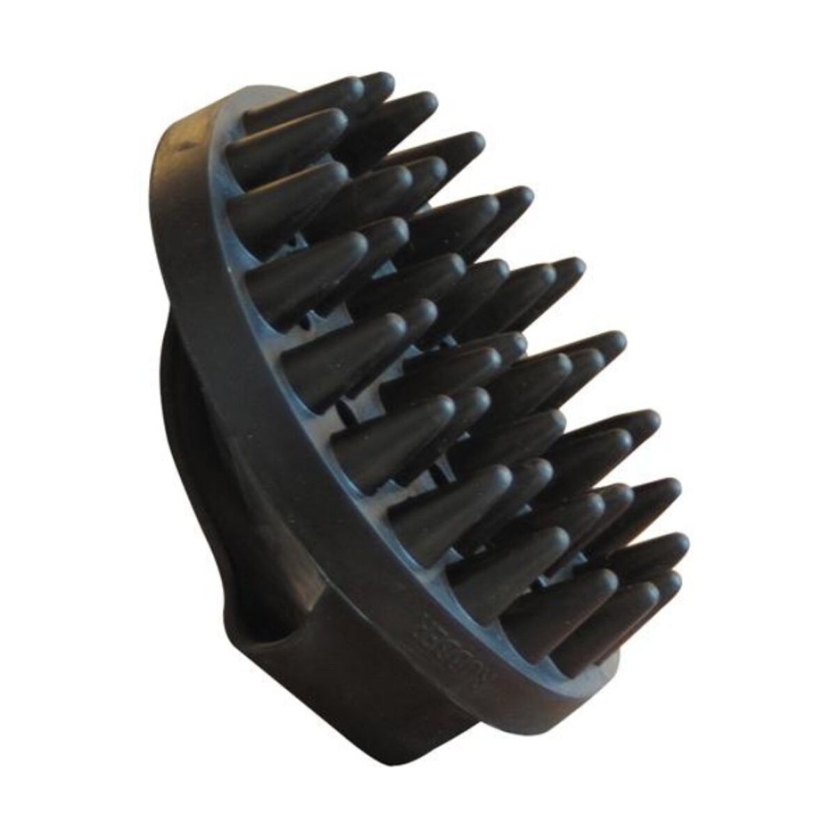 Gummi gnubber fra HorseGuard. Denne gnubber er med knopper og fjerner effektivt løse hår, skæl og støv fra hestens pels. Derudover har denne gnubber en masserende effekt.