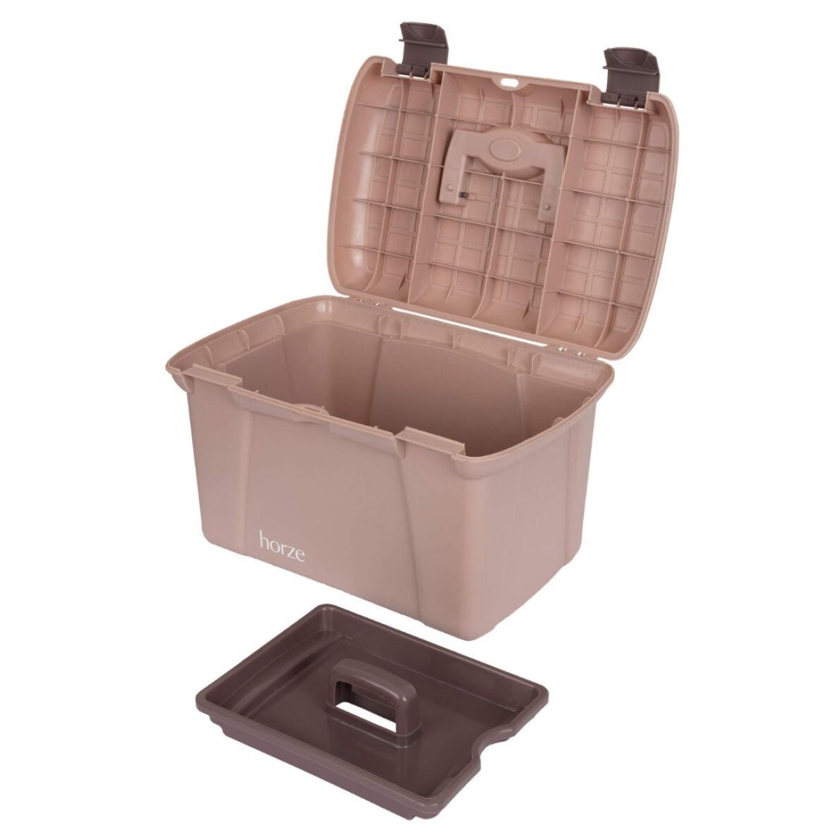 Solide striglekasse fra Horze. Med masser af rum til alle dine børster og plejeprodukter og kan også bruges som skammel når du skal ordne hesten. Den skridsikre overflade gør at du roligt kan stå på den. Indvendigt kan man fjerne bakken og organisere tingene. To lukninger og et robust håndtag gør det nemt medbringe den.