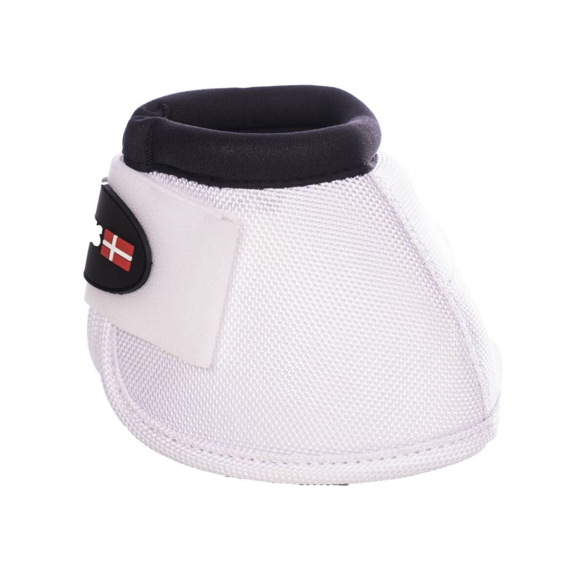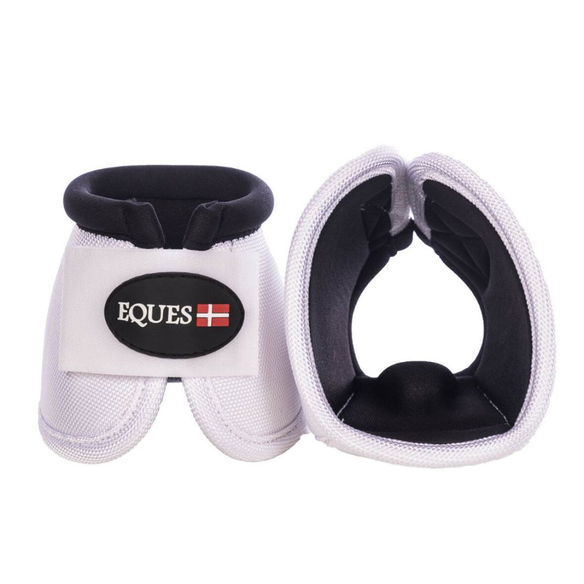 Beskyttelsesklokker i hvide fra Eques. Disse klokker beskytter hestens hove og koder. De er fremstillet i slidstærkt materiale med kraftig nylon og neopren indvendig. Kraftig velcrolukning med Eques logo. Kile indvendig i klokken sikre at klokken bliver på plads og ikke drejer rundt på hoven.