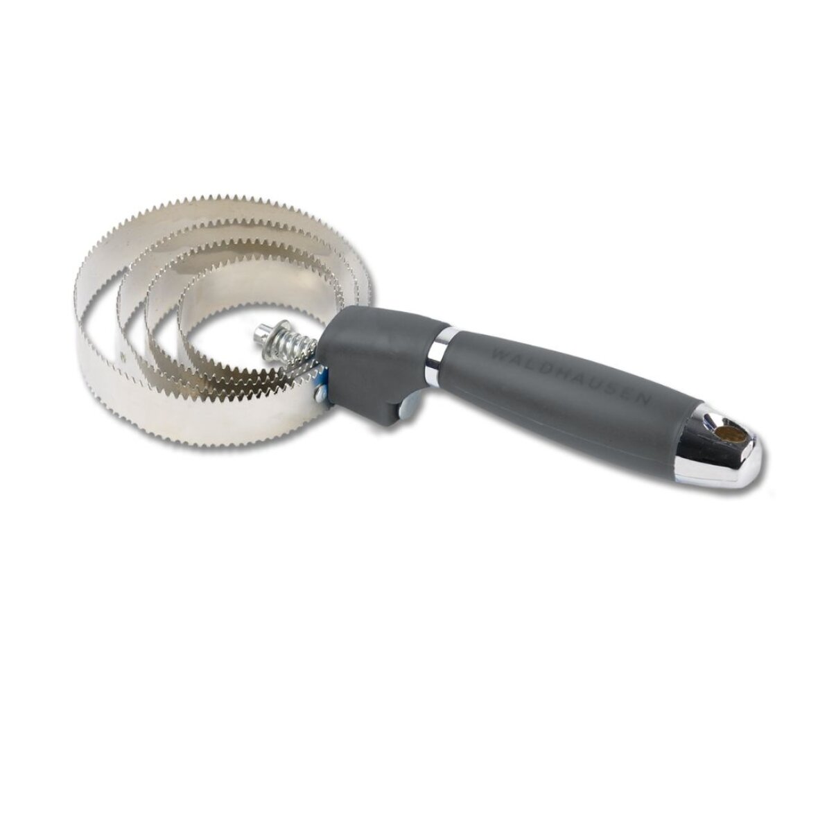 Metal strigle med langt gel håndtag fra Waldhausen. Striglen er god til heste med en tyk fældende vinterpels.