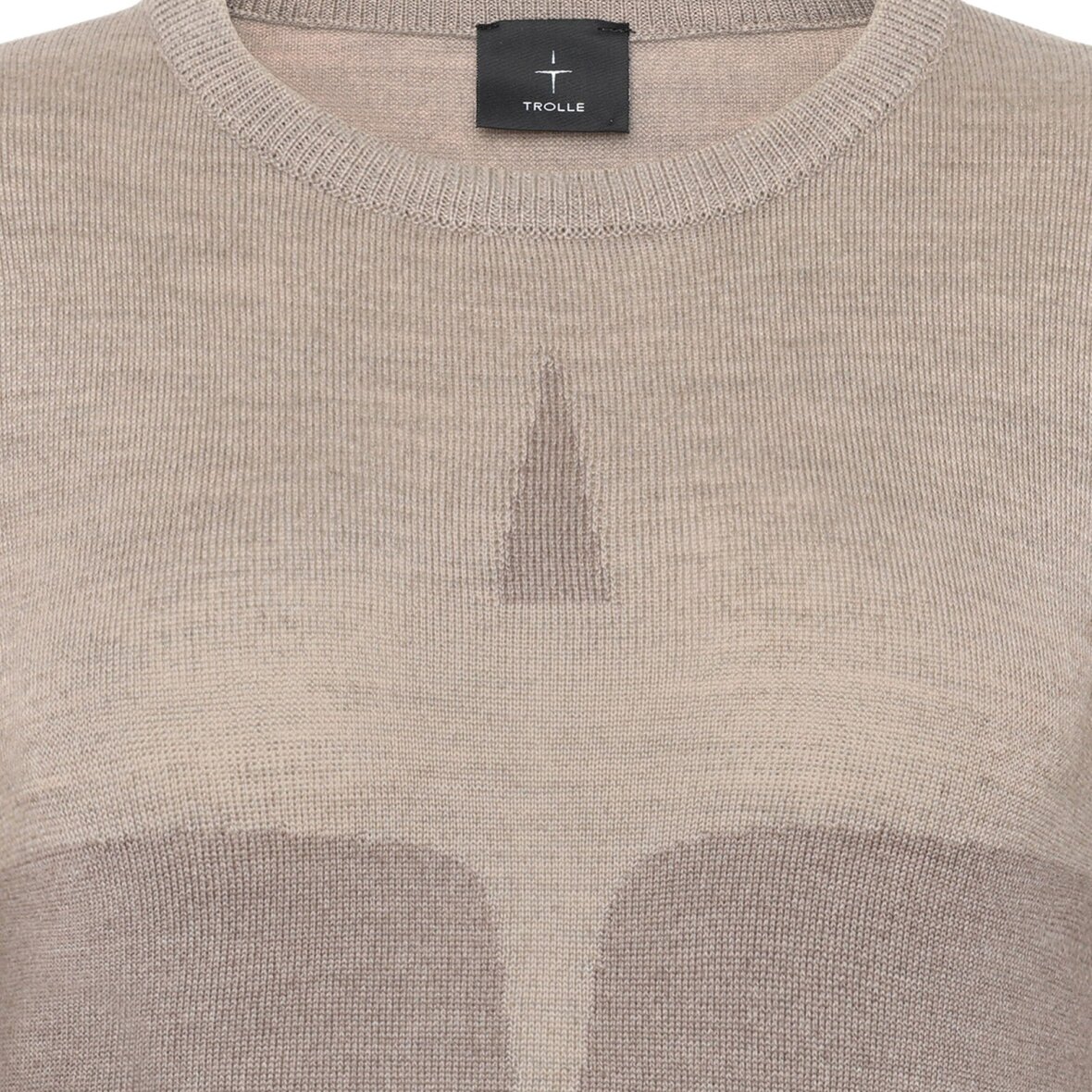 Flot og elegant tynd strikket bluse fra Trolle Projects. Blusen er fremstillet i cashmere og uld og er med ribbet kanter for at give den en god pasform. Trolle Projects logo stjerne på brystet.