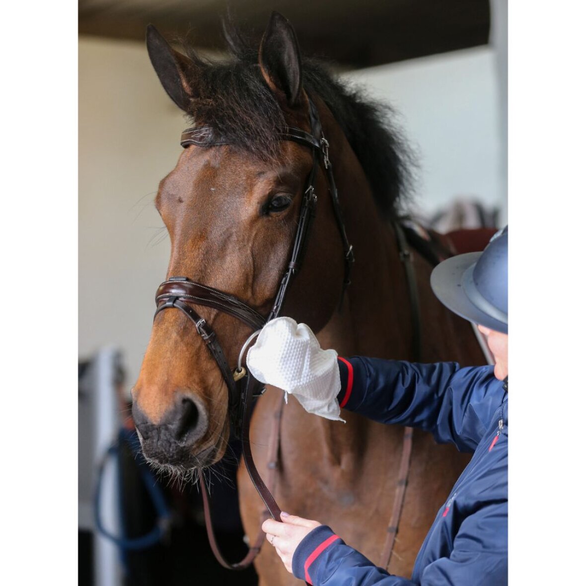 Tack cleaning mitt fra Carr Day Martin er en handske som hurtig og effektivt renser dit læderudstyr. Handsken er fremstillet i bæredygtig, biologisk nedbrydelig bambus. Handsken kan bruges både på udvendig og indvendig side af udstyret. Man kan også vende vrangen ud til ekstra beskidt læder. Nemme at have med på farten. Posen indeholder 10 stk. handsker.