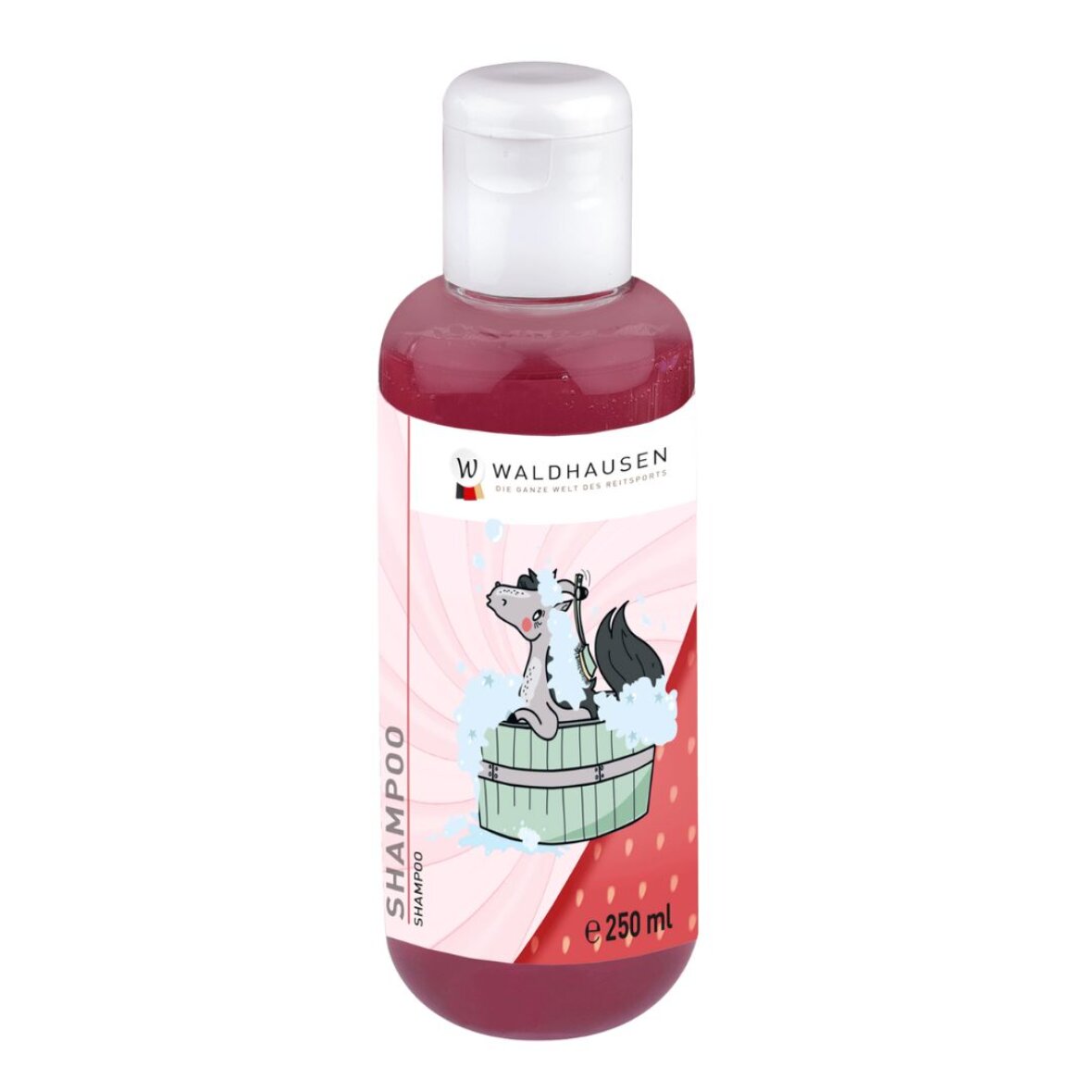 Hesteshampoo med jordbær og vaniljeduft fra Waldhausen. Denne hesteshampoo giver skånsom vaske af pels, man og hale. Den fjerner effektivt støv, skidt og sved fra hestens pels og tilføjer er en dejlig duft. Indeholder 250 ml.