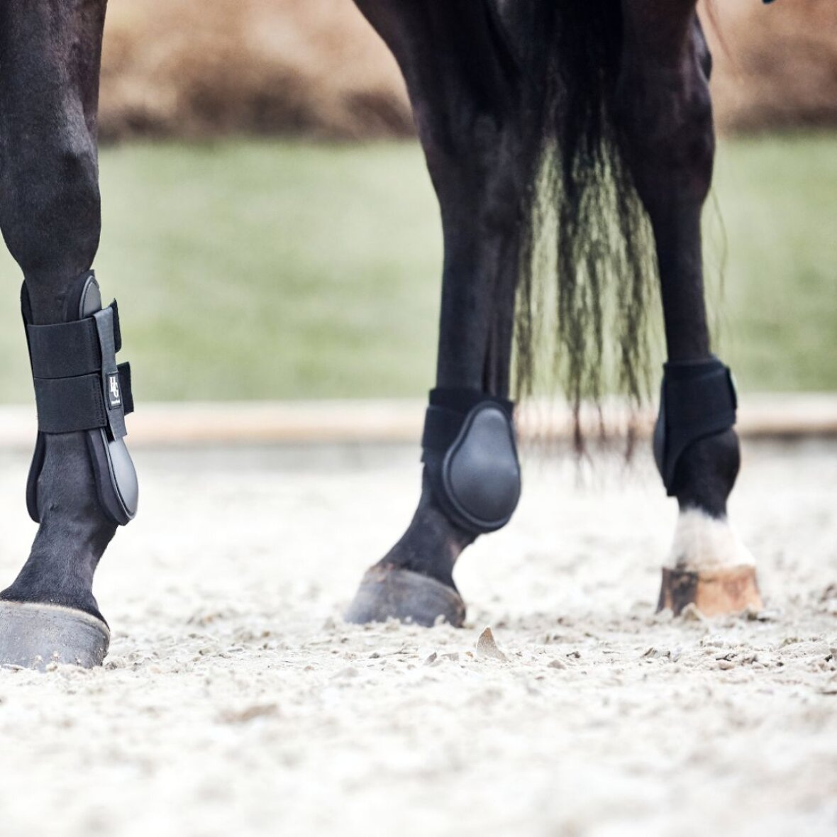 Bagbens gamacher med slagfast hård skal og stødabsorberende foring, sikre hestens ben og sener under ridning. Disse gamacher lukkes med velcrostrop og har en god pasform. HorseGuard logo på velcro lukningen.