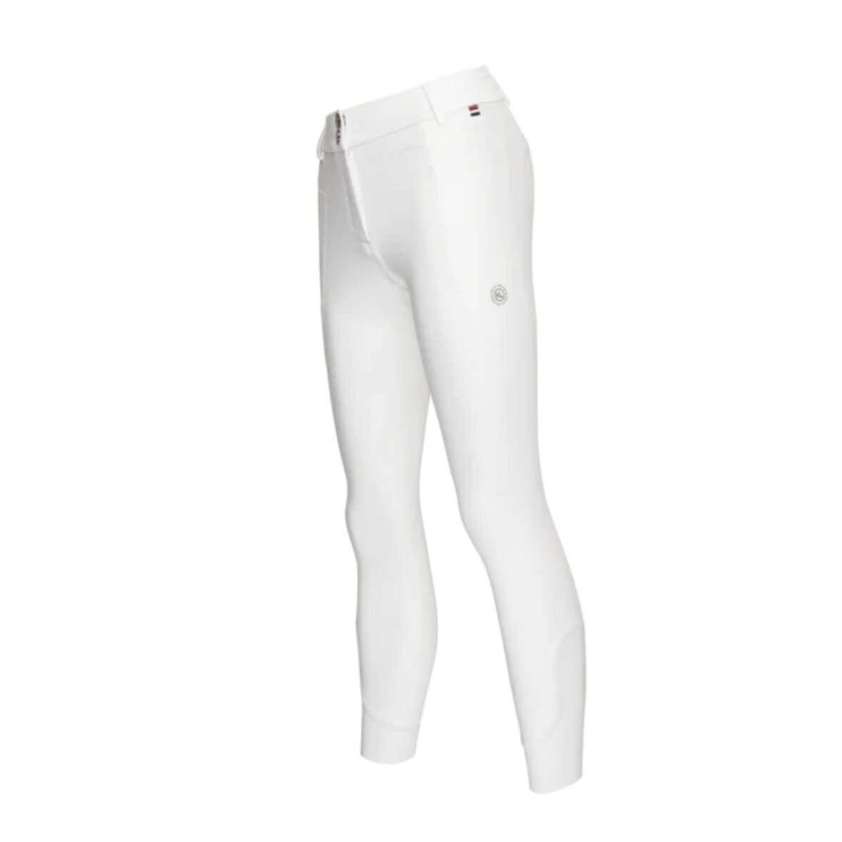 Stævneridebukser fra Kingsland. Disse ridebukser er med fuld silikone grip og har mesh materiale på siderne for at give god ventilation. 2 fake baglommer med lys glimmer, telefonlomme på det ene lår. Kingsland gummi logo på den ene side, samt Kingsland logo skrift forneden i mesh huller for god ventilation i støvlerne. Ridebukserne er fremstilet i stæk- og åndbart materiale som er behandlet med et middel som gør at insekter og fluer ikke bidder dig under ridning.