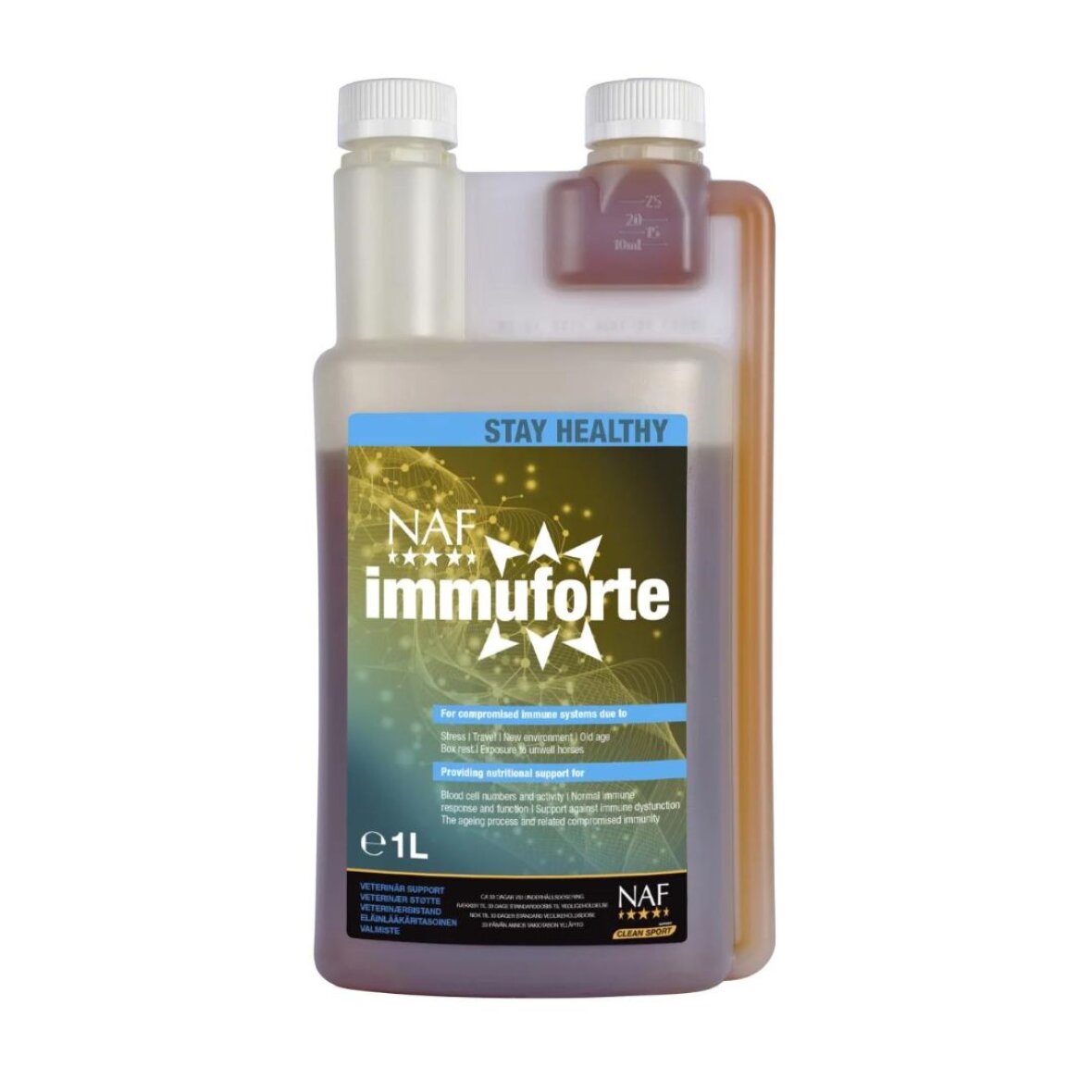 Immuforte til heste fra NAF. Fodring med Immuforte vil hjælpe med at målrette kroppens systemer, så deres forsvar forstærkes. Immuforte understøtter opretholdelse eller genopretning af et sundt og velfungerende immunsystem, når det er udfordret af stressorer i kroppen. Det fordrer et stærkt immunsystem, som understøtter hestens præstationsmulighed og Immuforte kan gives på daglig basis på tidspunkter, hvor systemet er under pres. Den unikke blanding af hurtigt agerende naturlige antioxidanter hjælper til at adressere oxidativt stress og fjerne affaldsstoffer, som ellers kan øge restitutionstiden og bidrage til at skade systemet.