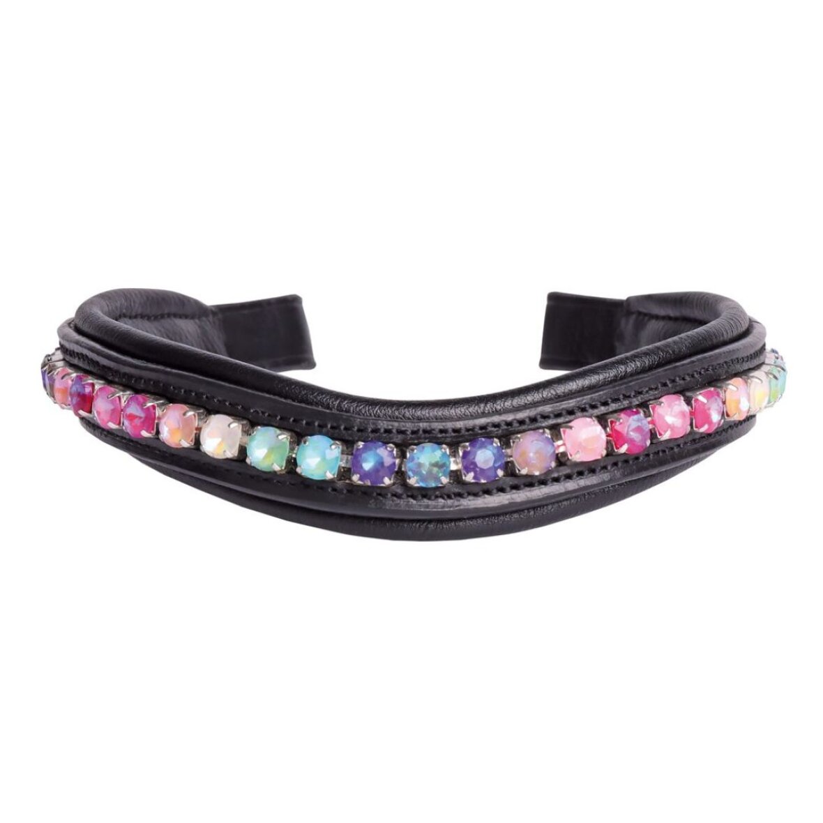 Let buet pandebånd fra Harrys Horse. Dette pandebånd er med regnbuefarvet krystaller og er med foring.