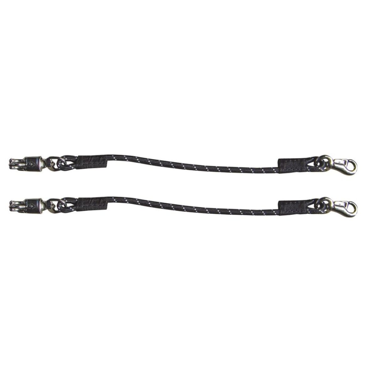 Elastik opbindning fra Harrys Horse. Disse elastikker er med panikhage i den ende som hesten spændes i, for hurtig udløsning, hvis hesten går i panik. De kan bruges til transport eller opbinding på staldgang.