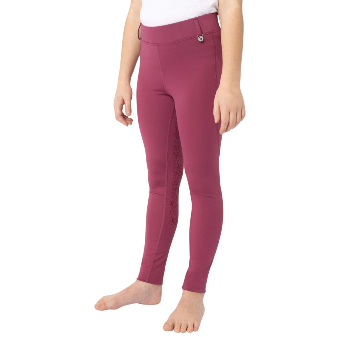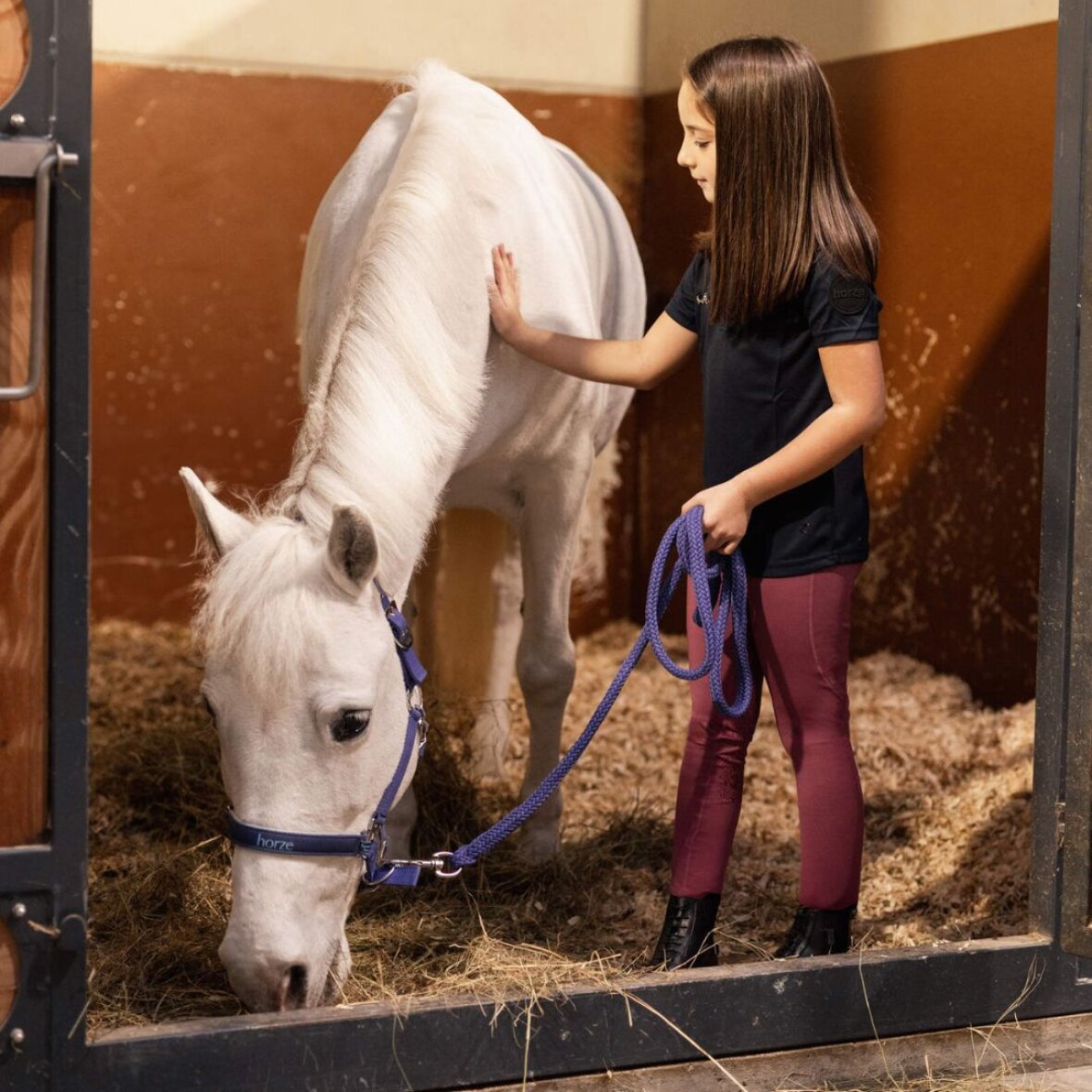 Strækbare børne ridetights fra Horze. Disse ridetights er med fuld silikone grip med mønster, telefonlommer på begge sider. De er med bred elastik linning og bæltestropper. Ridetights'ene er fremstillet i åndbart materiale og har et lille Horze logo patch ved hoften.