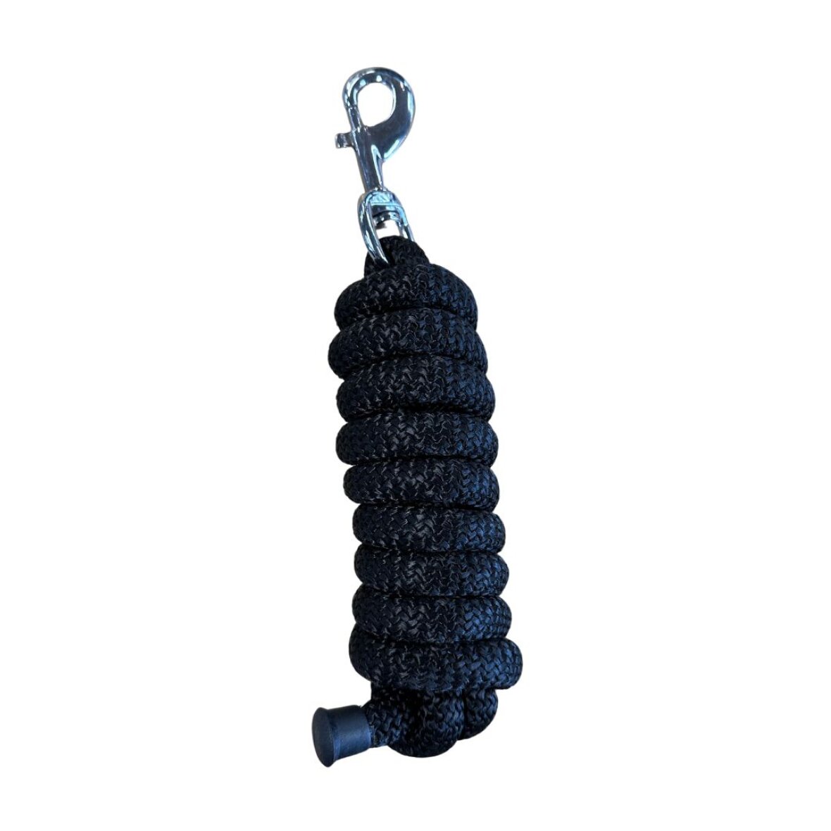 Blødt flettet træktov fra Eques. Dette træktov måler 2 meter og har rustfri karabinhage i enden.