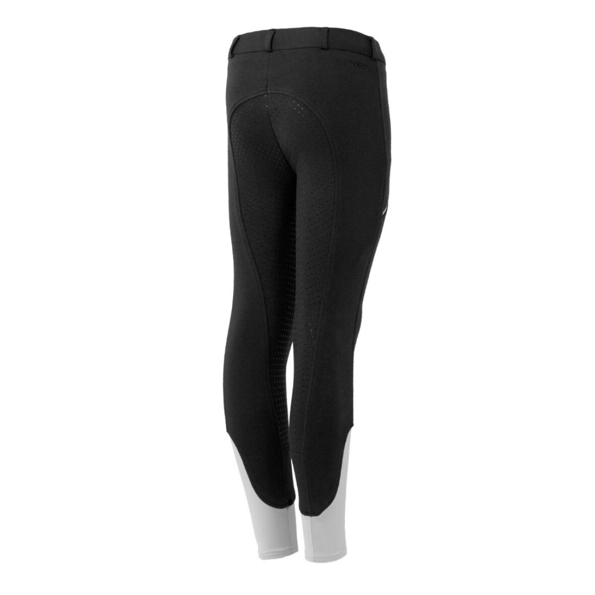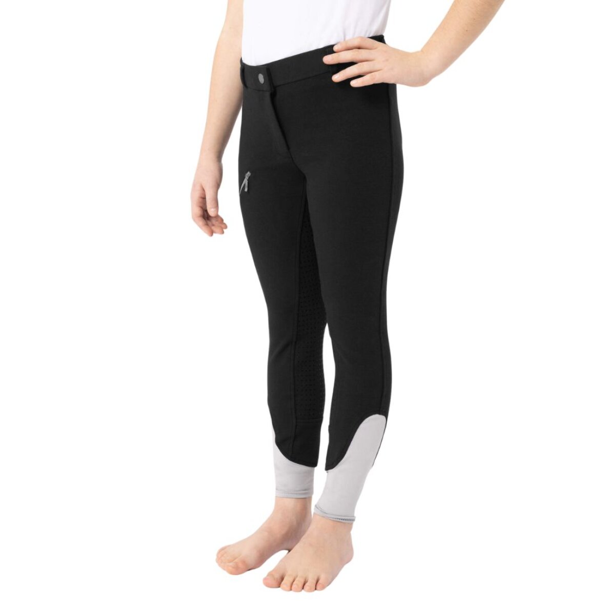Bløde børne ridebukser fra Horze. Disse ridebukser er fremstillet i åndbart bomuld og har fuld silikone grip bagpå. De har telefonlomme med lynlås på det ene lår og er med glat elestik materiale forenden i benene for nemt at komme i ridestøvlerne.