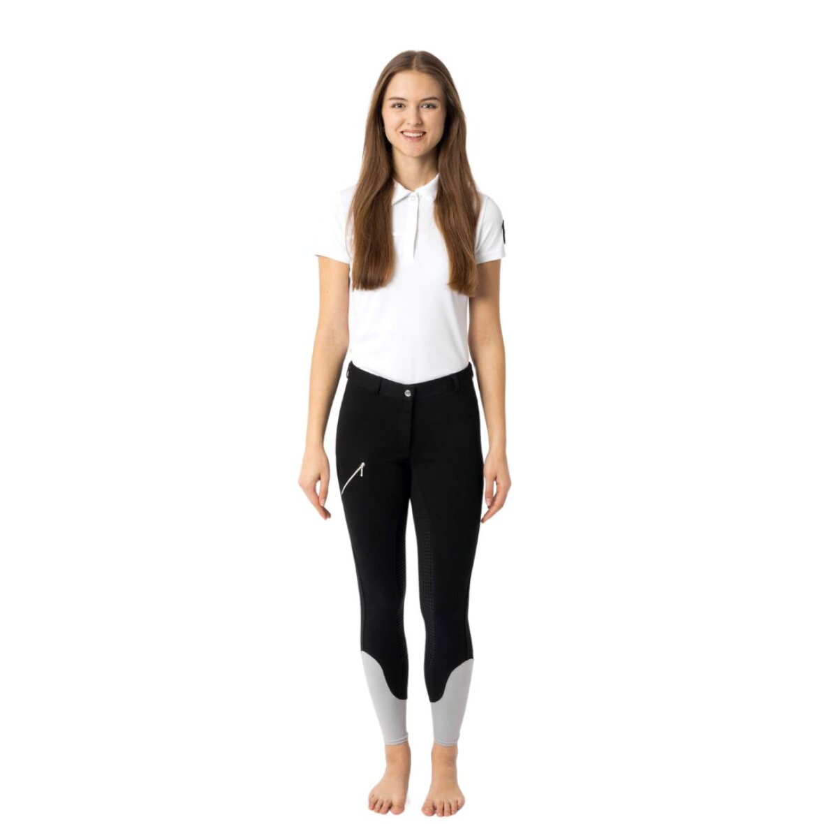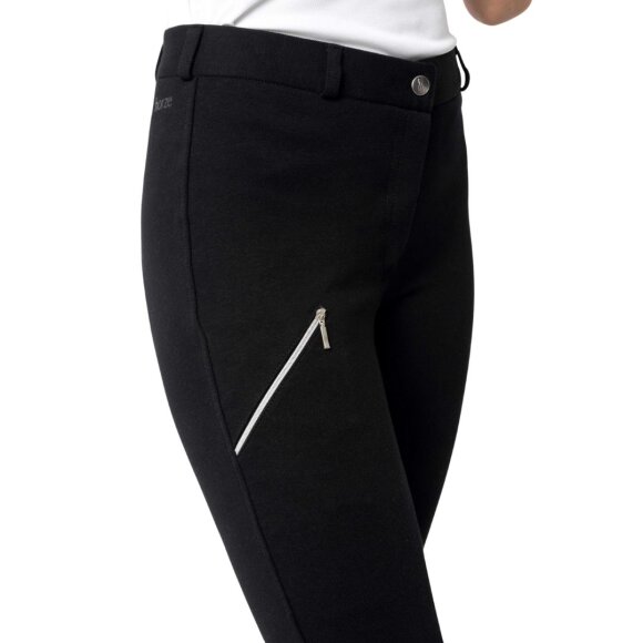 Bløde ridebukser fra Horze. Disse ridebukser er fremstillet i åndbart bomuld og har fuld silikone grip bagpå. De har telefonlomme med lynlås på det ene lår og er med glat elastik materiale forenden i benene for nemt at komme i ridestøvlerne.