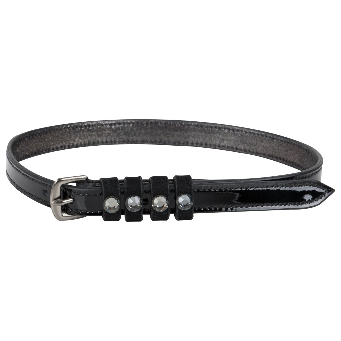 Flotte sorte sporeremme med lak og sorte spænder og krystaller ved spænde. De er fremstillet i læder og er derfor holdbare.