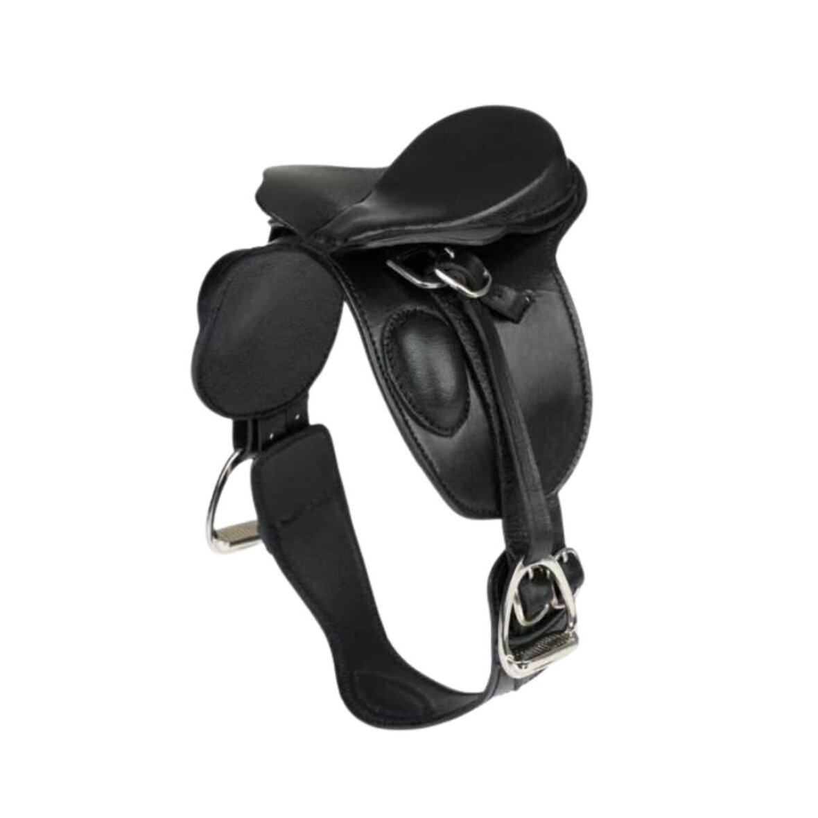 Dressur sadle som passer til mini toy ponyerne fra LeMieux. Denne sadel er lavet i ægte læder og er med gjord, stigbøjler, stigremme og store knæpuder som i en rigtig dressur sadle.