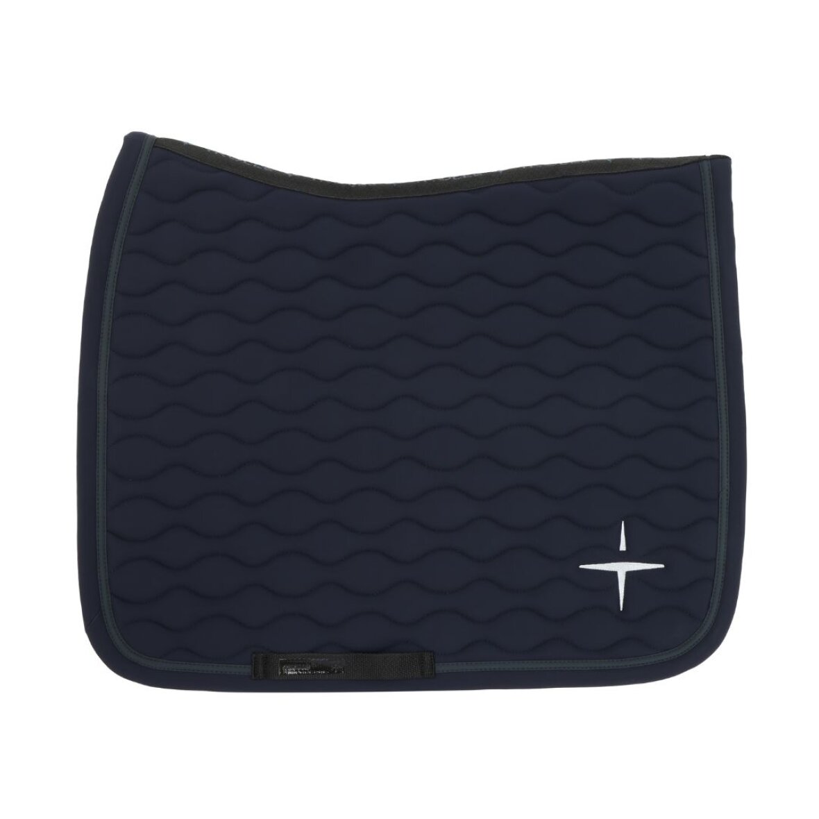 Smukt dressur underlag fra Trolle Projects. Dette underlag er fremstillet i åndbart og hurtigtørrende materiale og har bredt mesh materiale ved rygsøjlen, som giver hesten en god komfort, da den kan komme af med varmen. Dressur underlaget er med en flot bølgede quiltning og har en grå kontrastpipe rundt langs kanten, samt hvidt Trolle Projects logo på den ene side.