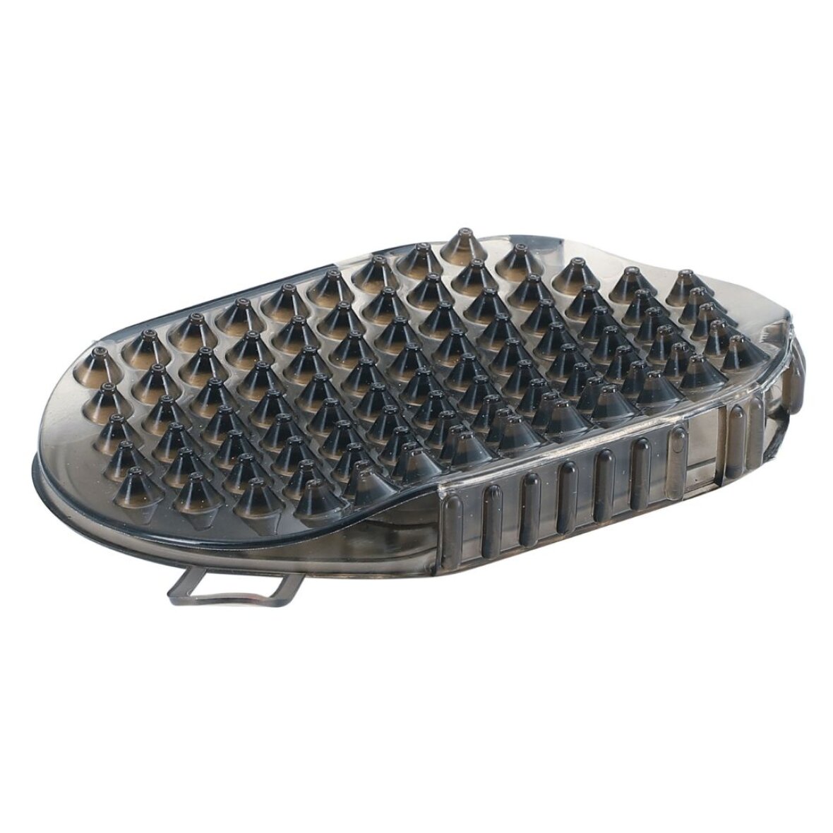 Massagestrigle fra HorseGuard med metal kugler på den ene side, som giver en blød let massage og gnubber på den anden side, som også giver en let massage og fjerne de løse hår fra hestens pels.