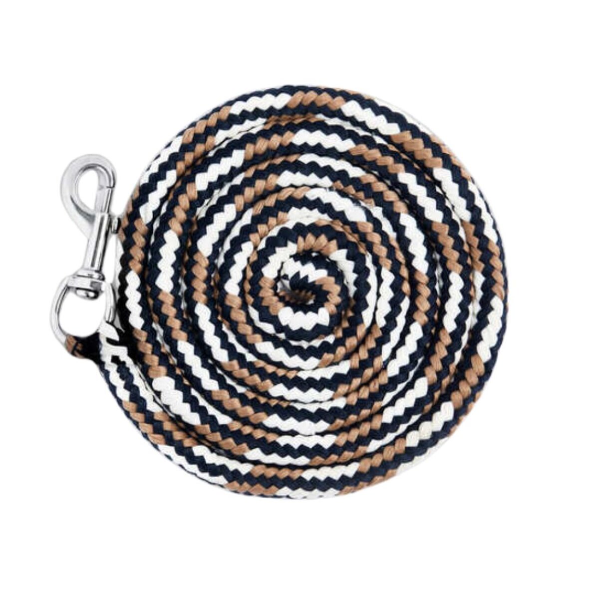 Det flotte Horze Kiel træktov er fremstillet af farverigt flettet reb, der er solidt og nemt at holde om. En stærk karabinhage sættes sikkert i yndlingsgrimen.