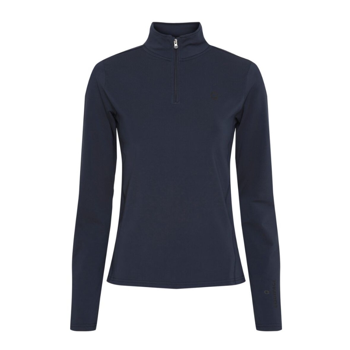 Træningsbluse til voksen med lange ærmer og høj krave. Blusen er åndbar og hurtigtørrende samt lukkes med halv lynlås i halsen. Equipage logo på det ene bryst.