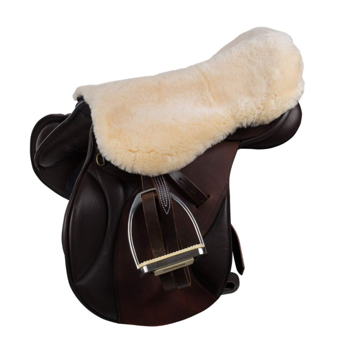 Ægte lammeskind sadelovertræk fra Horze. Dette sadelovertræk holder dig varm på de kolde dage og er yderst holdbart. Det er med elastik og velcro til fastgørelse.