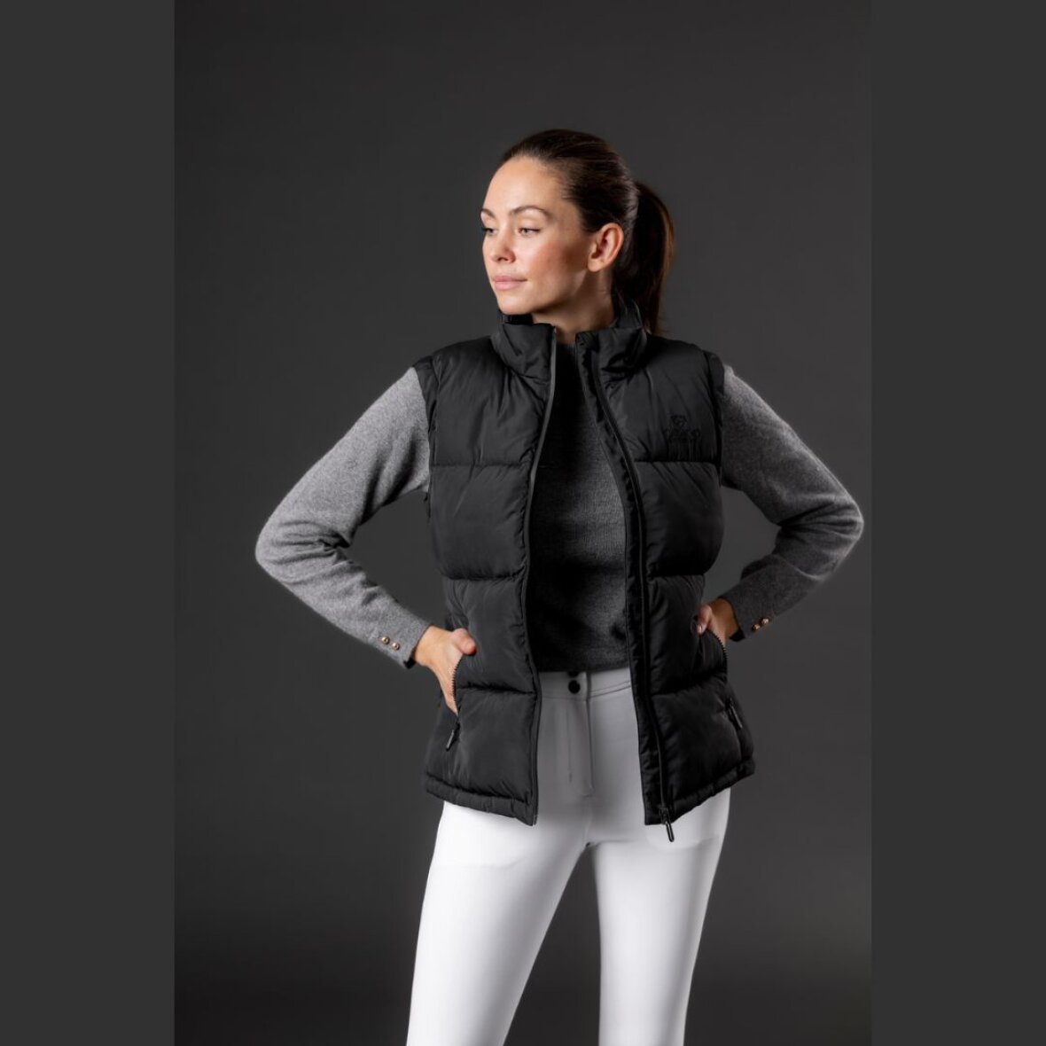 Lækker varm ridevest fra Catago. Denne vest er vatteret og kan hold dig varm på de kolde dage. Den er med 2 lynlåslommer og har 2-vejs lynlås i fronten. Hvidt Catago logo broderet på det ene bryst.