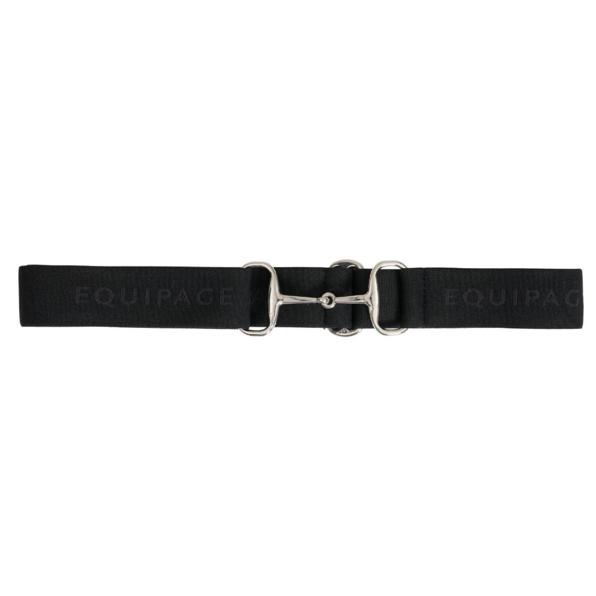 Elastik bælte fra Equipage. Dette bælte kan justeres i størrelse med spænde og har præget Equipage logo. Det lukkes i fronten med sølvfarvet bid.