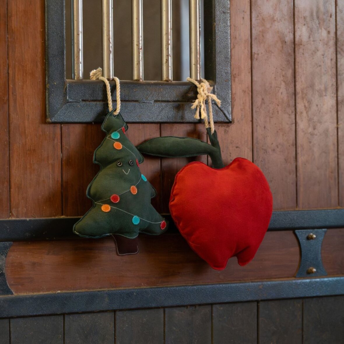 Det fineste juletræ til hestens boks eller boksdør. Legetøjs juletræet fra HorseGuard er den perfekte legekammerat, hvis din hest keder sig, eller du blot ønsker at give din hest noget underholdning. Den er fremstillet i kraftig læder, som kan holde til hesten tænder. Den er med reb til ophængning.