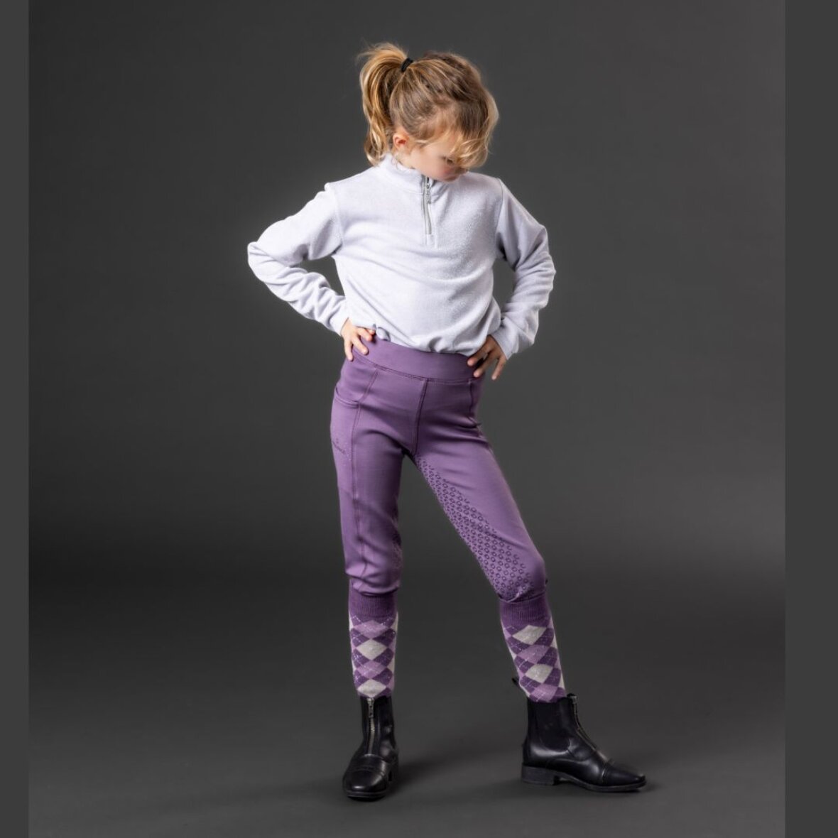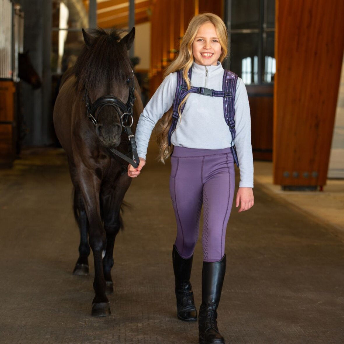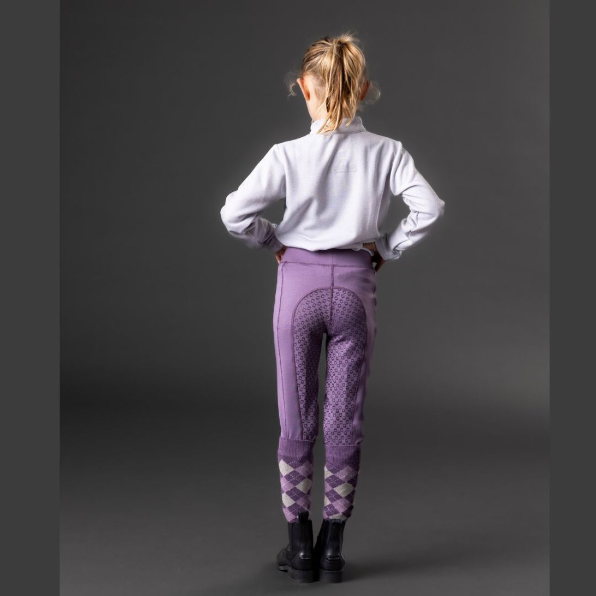 De sødeste vinter ridetights til børn fra Equipage. Disse ridetights er med fuld silikone grip i Equipage logo mønster og har elastik linning, samt justerbar elastik bånd indvendig i bukserne. De er med børstet inderside, for at give varme på de kolde dage, samt har telefonlomme på den ene side med logo og glimtende krystaller.