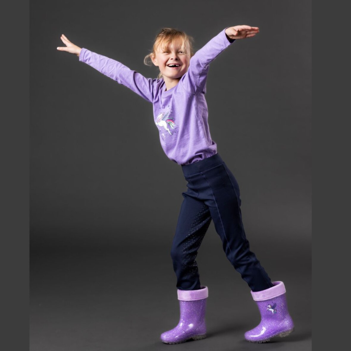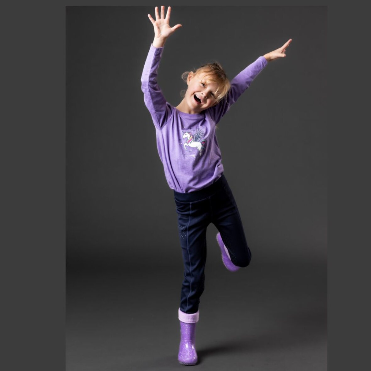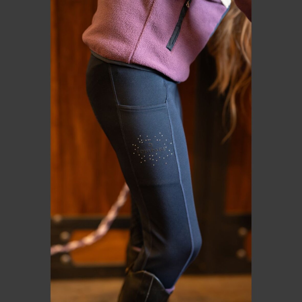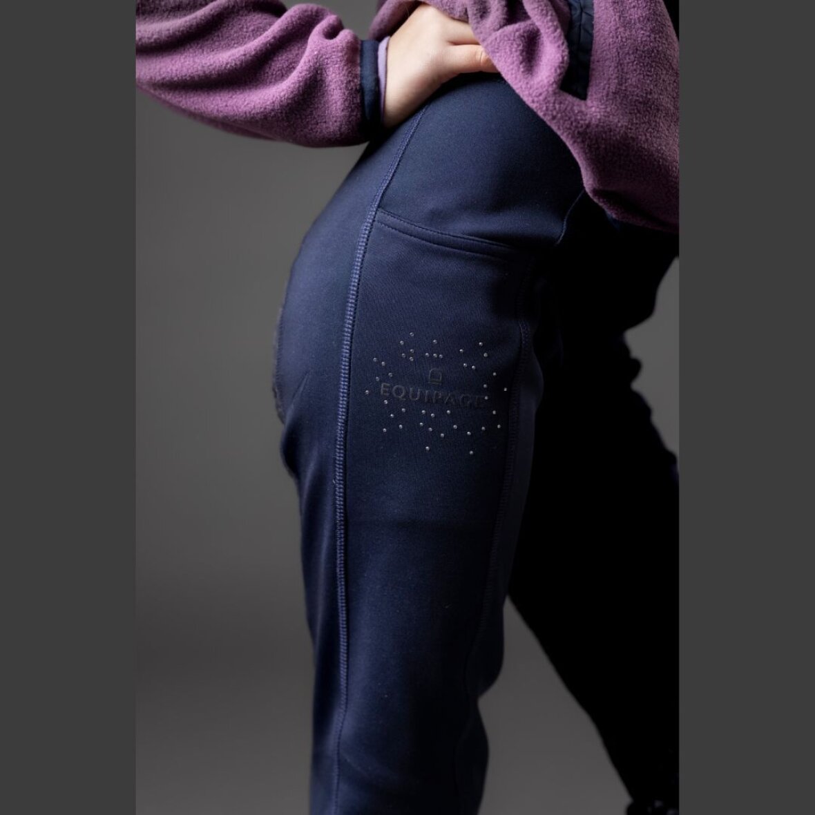 De sødeste vinter ridetights til børn fra Equipage. Disse ridetights er med fuld silikone grip i Equipage logo mønster og har elastik linning, samt justerbar elastik bånd indvendig i bukserne. De er med børstet inderside, for at give varme på de kolde dage, samt har telefonlomme på den ene side med logo og glimtende krystaller.