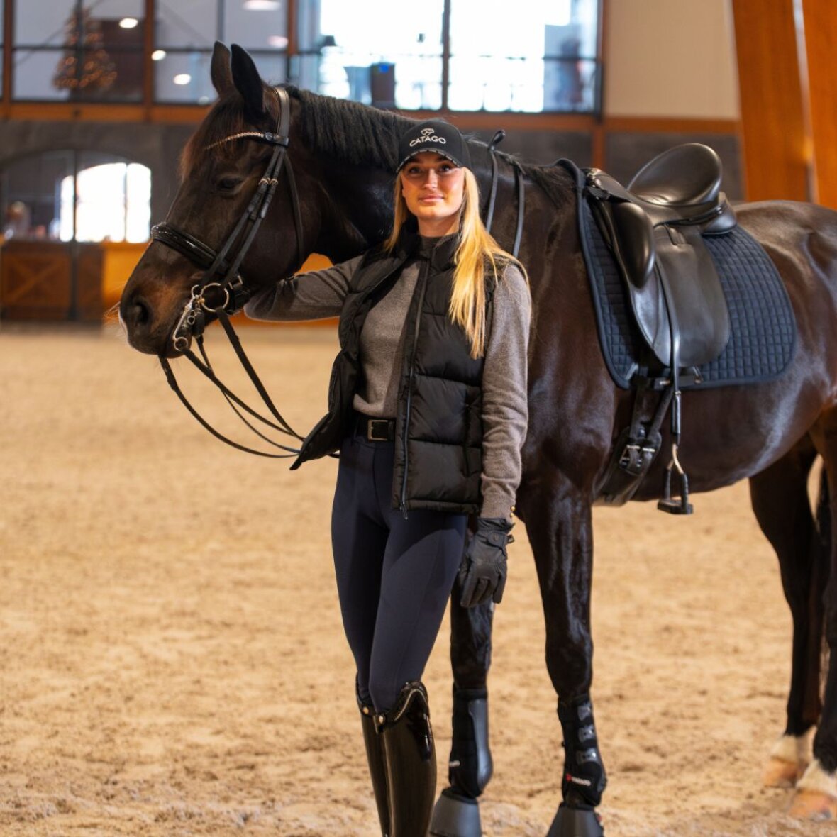 Performance dressur underlag fra Catago. Dette dressur underlag er med Fir-Tech-teknologi. Fordelagtige antiinflammatoriske og varmende effekter fra de keramiske partikler. Fast polstring, der understøtter tæt kontakt med hesten. Mesh-kanal langs rygsøjlen giver ekstra ventilation. Matchende gjordforstærkning for at forhindre skader fra gjorden. Ergonomisk formet design med en ydre ruskindsfinish.