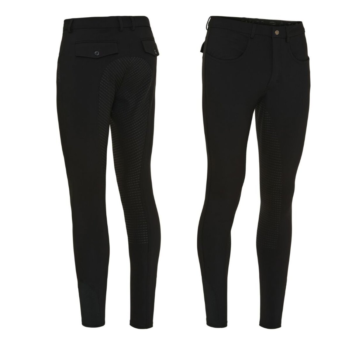 Herre ridebukser fra Catago. Disse ridebukser er med fuld silikone grip og har fake baglommer samt 2 lommer i fronten. De er fremstillet i ånd- og strækbart materiale med en glat yderside for nemt at holde dem rene. Bælterstropper og lukkes med hæfter og lynlås.