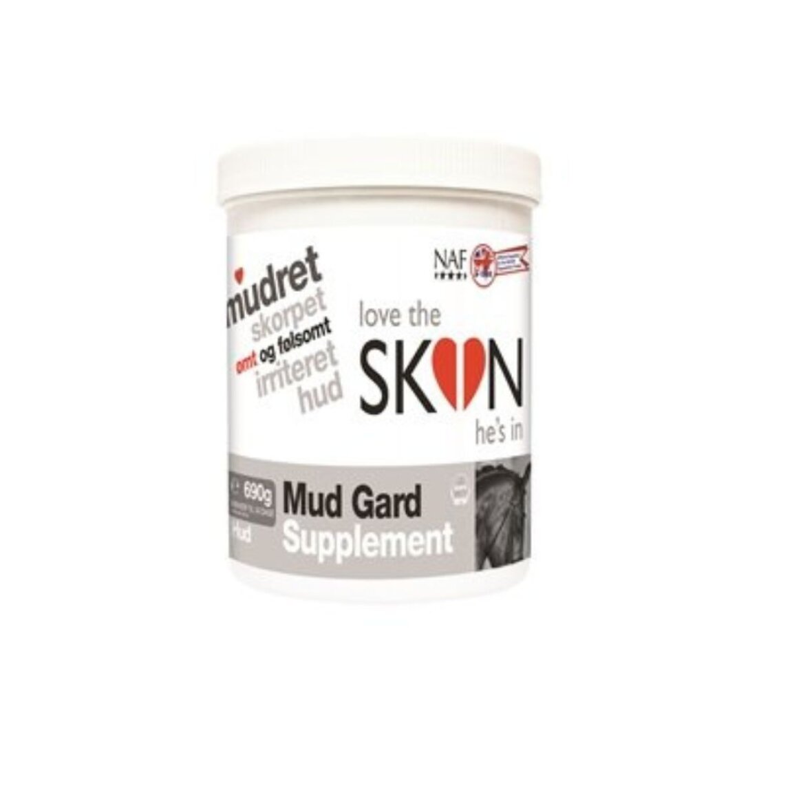 Mud gard supplement fra NAF. Ernæringsmæssig støtte til hud, der bliver udfordret af våde og mudrede forhold. Nogle heste kan få udfordringer med deres hud, især på benene, når huden svækkes på grund af udefrakommende forhold. Ved at optimere foderplanen med fokus på hud med Mud Gard kan vi hjælpe hesten med at styrke hudens naturlige forsvar. Mud Gard indeholder en unik blanding af videnskabeligt dokumenterede antioxidanter fra naturlige kilder, vigtige urter og andre næringsstoffer, inklusive MSM, for at skabe stærk, sund hud indefra. NAF anbefaler, at du begynder at give din hest Mud Gard, før den våde og mudrede sæson begynder, så de vigtige næringsstoffer når at blive optaget i hestens system.