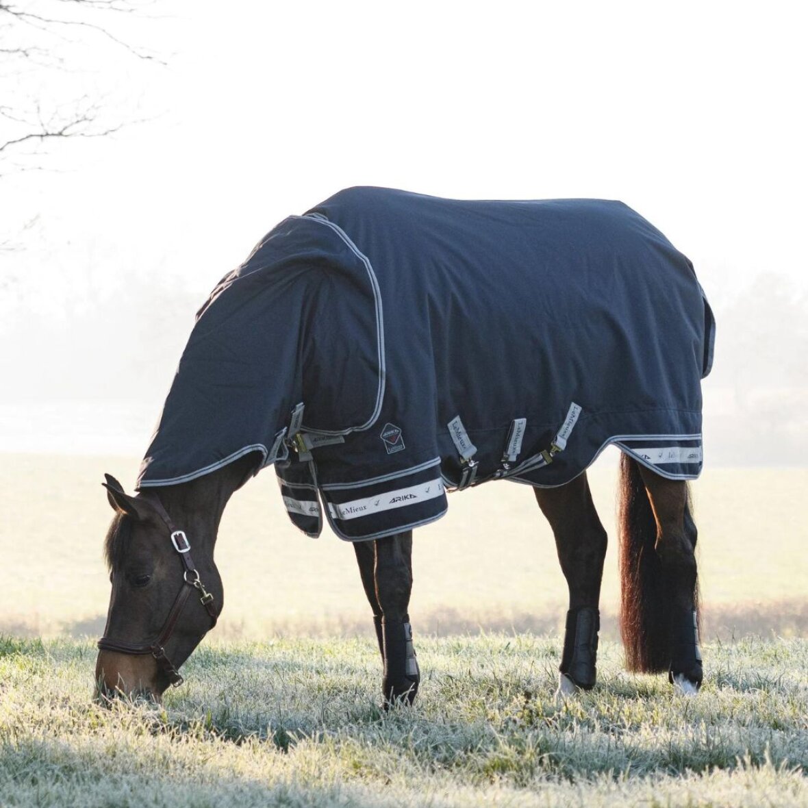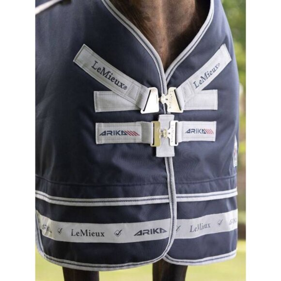 Arika Storm-Tek overgangsdækkenet fra LeMieux, dækkenet er udviklet med et revolutionerende patenteret system. "Underdelen" giver et brud i sømmen, hvilket mindsker træk i tekstilet og giver større bevægelsesfrihed. Det centrale panel hjælper med at holde dækkenet på plads og giver ekstra beskyttelse. Arikas vinklede frontlukningsbeslag giver et jævnt træk for at balancere og fordele trykket, hvilket hjælper med at forhindre gnidning på skulderpunktet og på tværs af brystet.