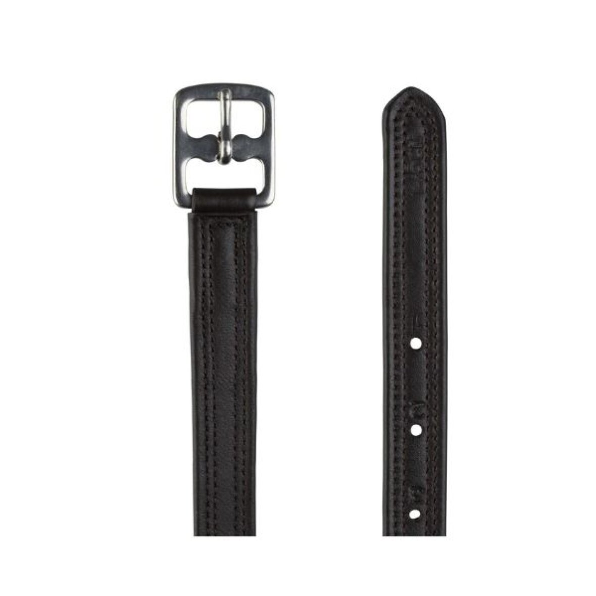 Praktiske, solide læderstigremme. Disse læderstigremme er fremstillet af blødt læder på den ene side og nylon på den anden. 12 huller gør dem nemme at justere. Stærke og robuste spænder i rustfrit stål.