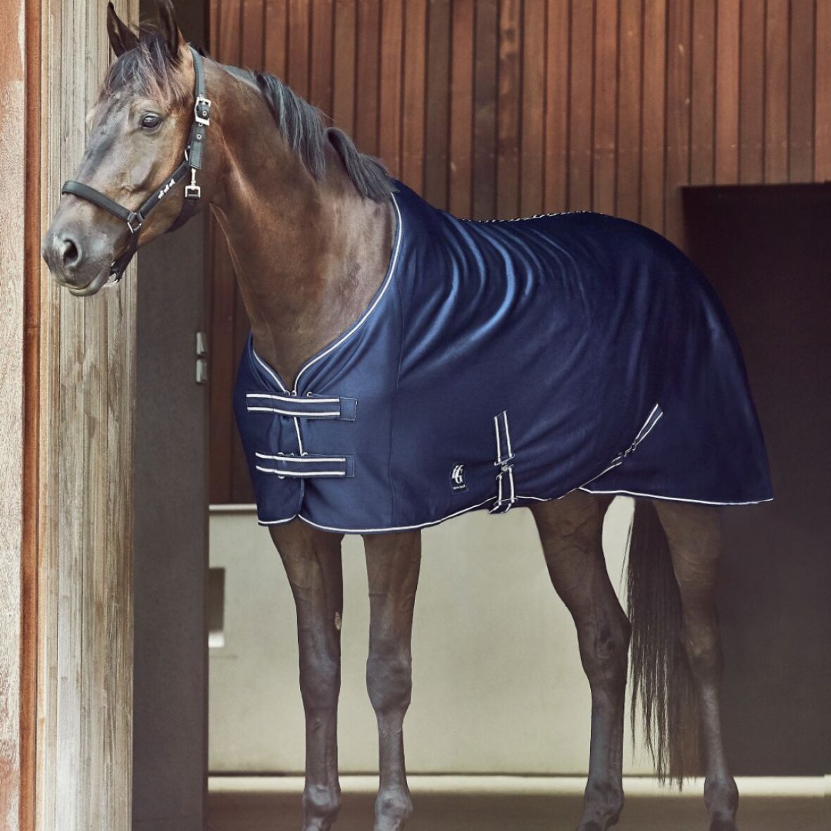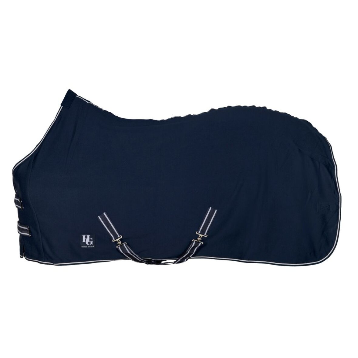 Cooler dækken fremstillet i en Jersey polyester fra HorseGuard. Dette cooler dækken kan også fungere som en transport dækken. 2 enkle spænder ved bringen og justerbare mavestropper. Jersey materialet giver dækkenet et glat overflade.
