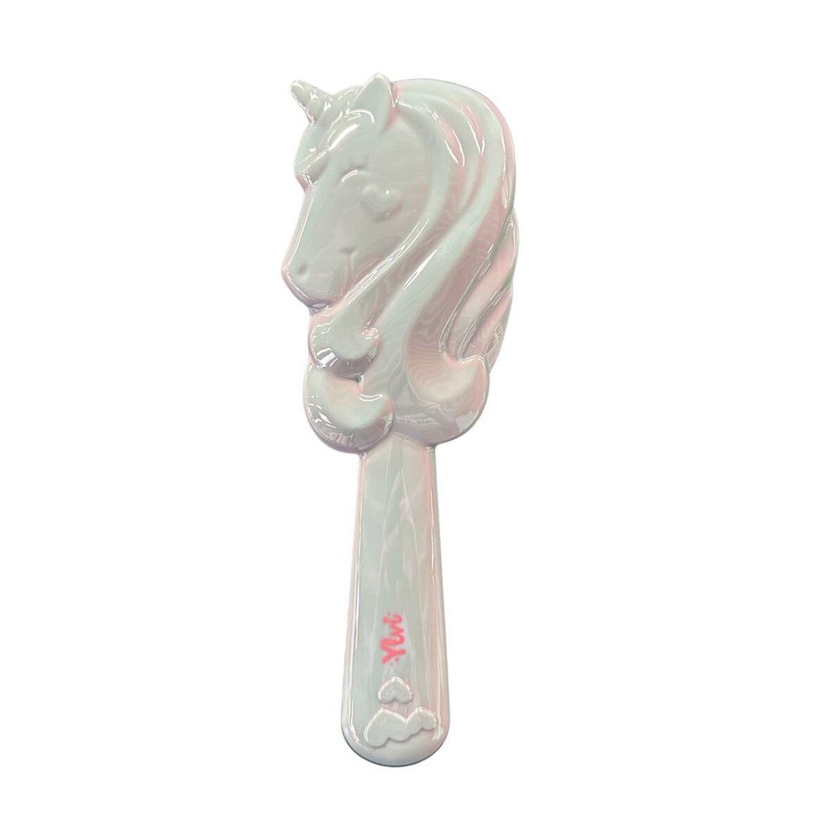 Fineste unicorn hårbørste. Denne hårbørste er formet som en unicorn og changere i farven lyserød.