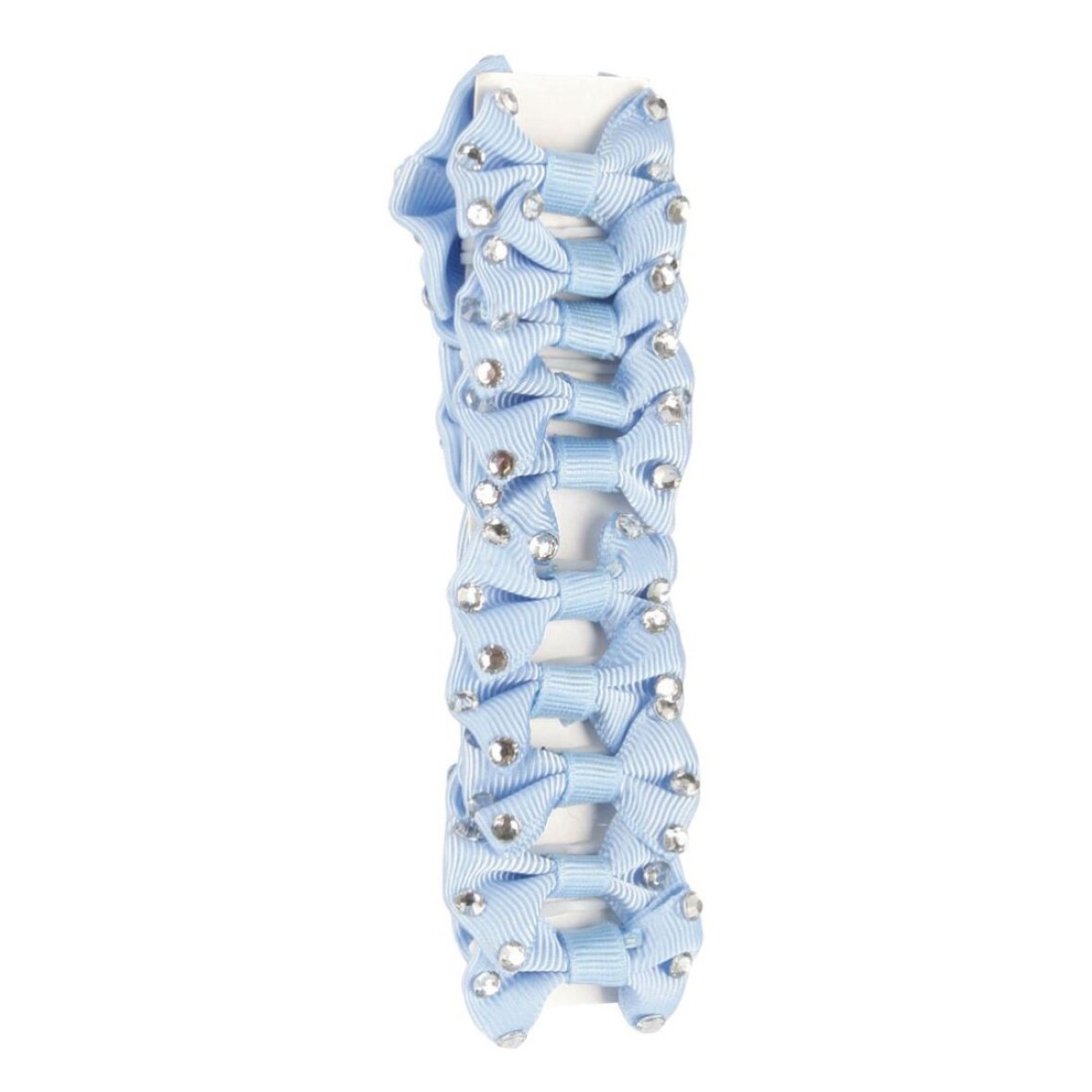 Man og hale elastikker med lyseblå sløjfe og krystaller. Sælges i pakke med 20 stk.