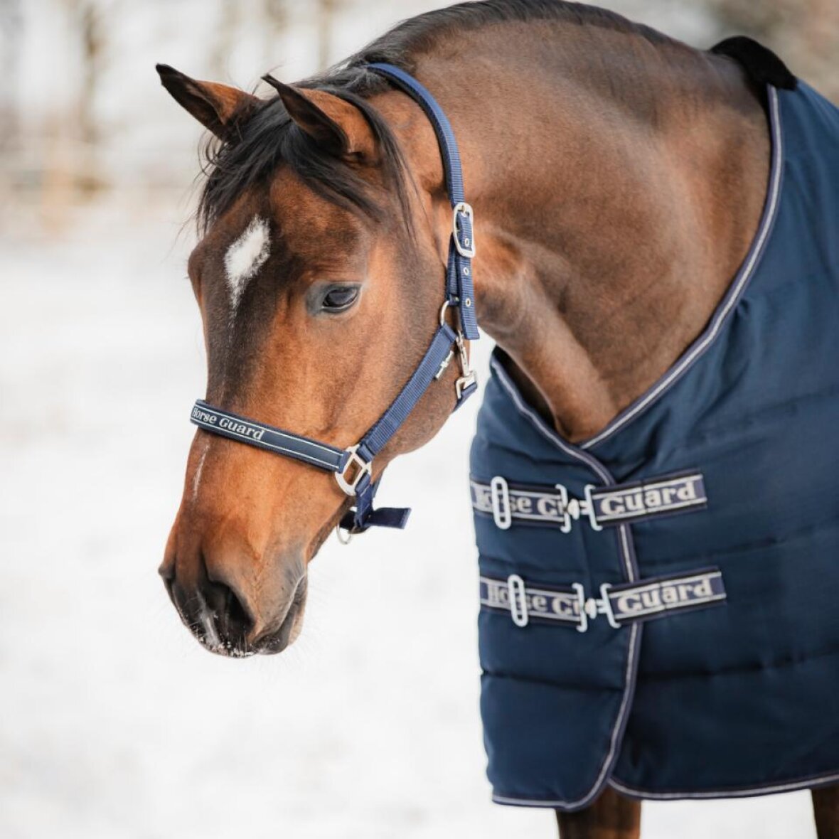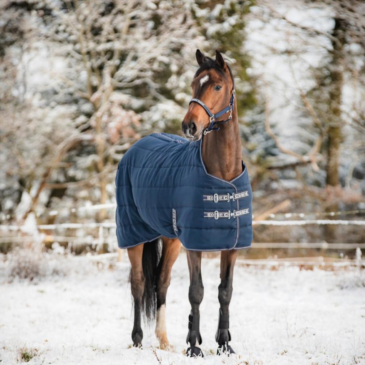 Lækkert stalddækken fra HorseGuard med 300 g fyld. Dækkenet er med justerbare mavestropper med HorseGuard logo på. Imiteret pels ved manen. Dækkenet er med 210D