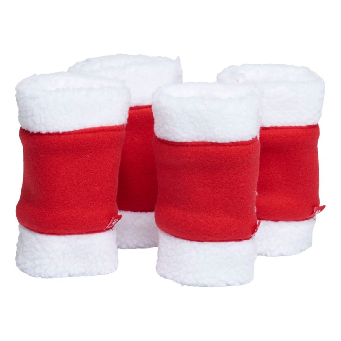 Jule gamacher med imiteret hvid plys indvendig. Jule gamacherne lukkes med velcro.