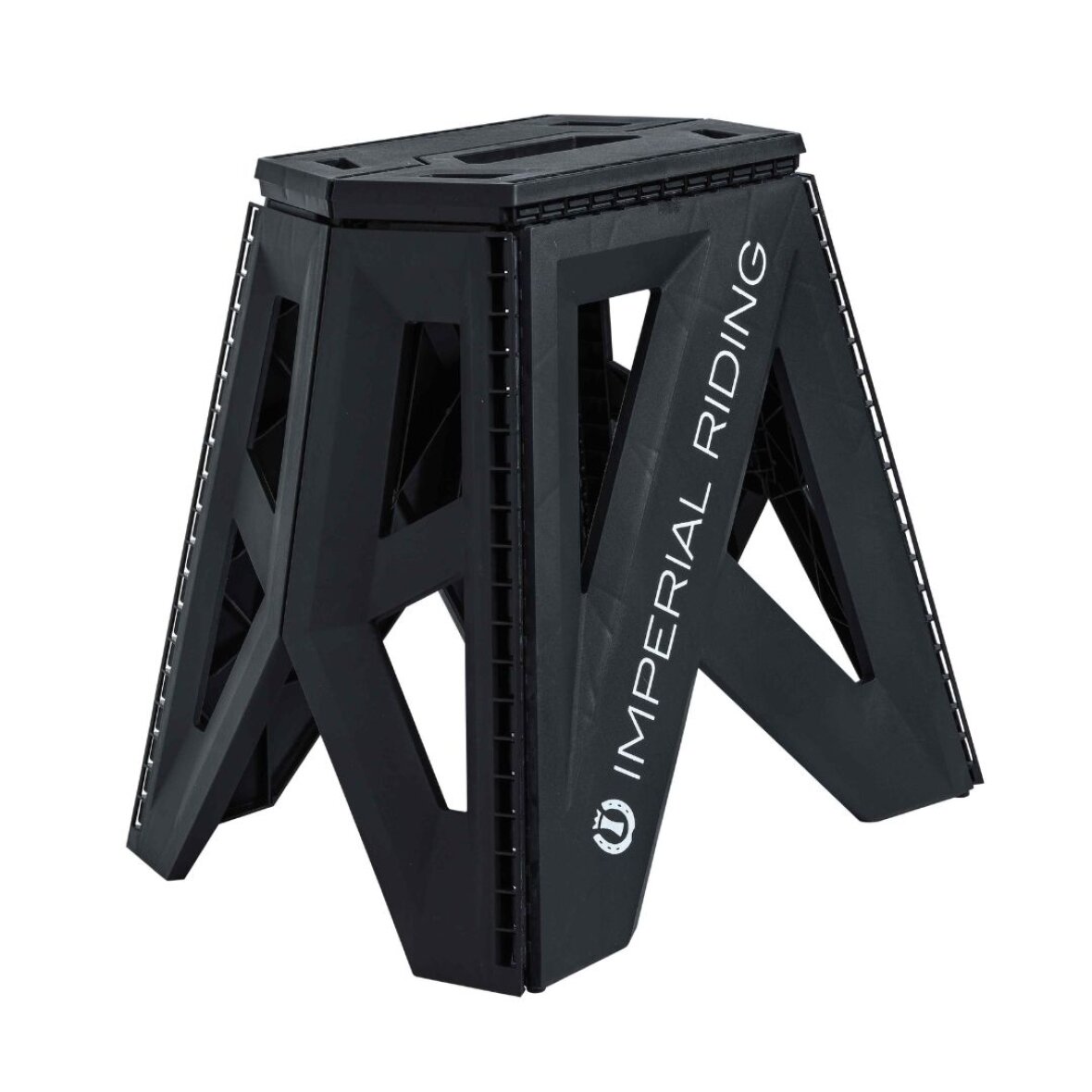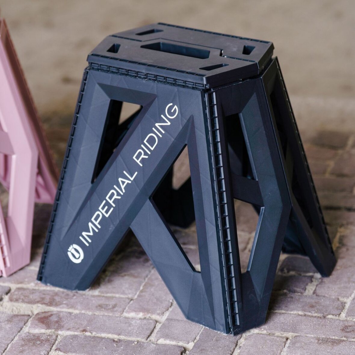 Sammenklappelig skammel fra Imperial Riding. Denne skammel er fremstillet af genbrugsplast og så kan den nemt slåes sammen, så den intet fylder. Max belastning er 90 kg.