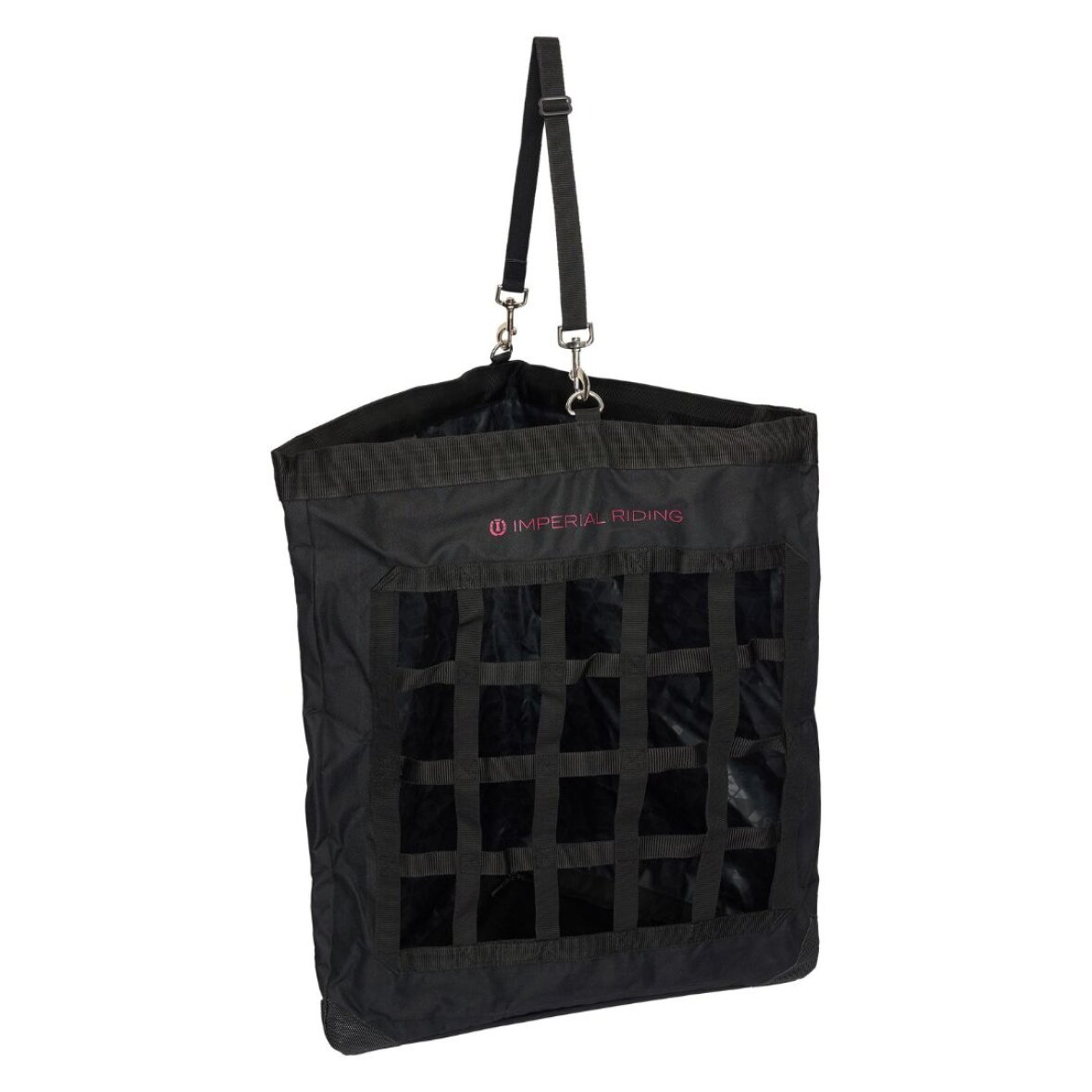 Hjørne høpose fra Imperial Ridning. Denne høpose er den ideelle høpose til stalden. Den trekantede form gør den perfekt til at hænge i hjørner, samt de små masker giver hesten en længere tyggetid.