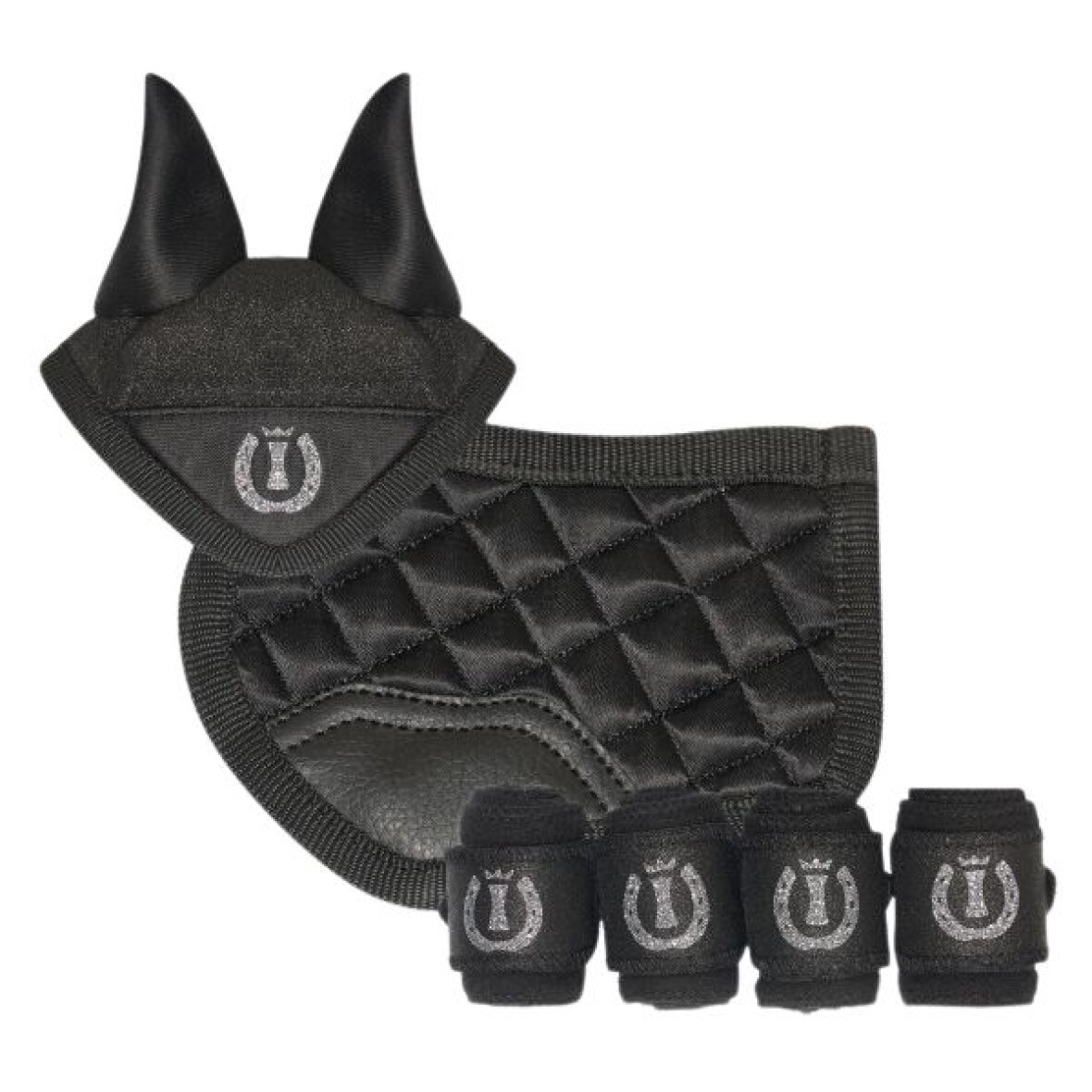 Sæt bestående af hut, underlag og bandager fra Imperial Ridning, som passer til alle mini toy ponyerne fra LeMieux. Fleecebandager som lukkes med velcro og glimmer. Underlag med satin look og hut med glitter og Imperial Riding logo.