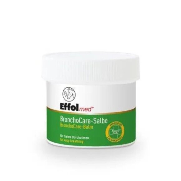 Broncho Care balm fra Effol er til let vejrtrækning. Ved indånding fremmer denne specielle sammensætning af ædle olier - timian, eukalyptus, mynte, fennikel, salvie og stjerneanis - fjernelse af slim fra lungerne. Ved at gnide balsamen ind i næseborene udefra frigives bestanddele af de æteriske olier, som beroliger luftvejene og tilskynder til let vejrtrækning. En beskyttende film dannes på næseborene som en anden hud og beskytter mod ydre påvirkninger. Indeholder 150 ml.